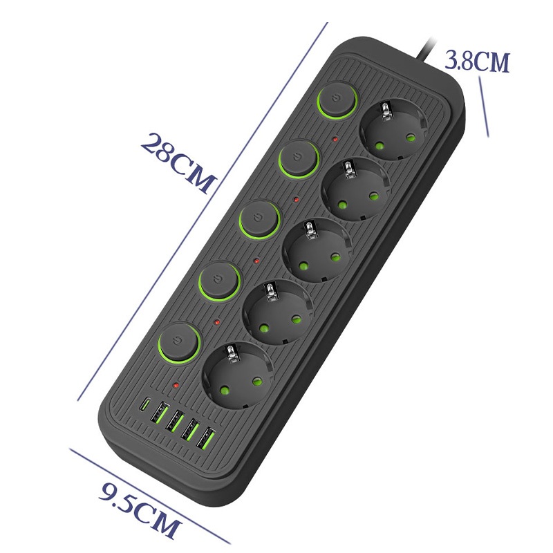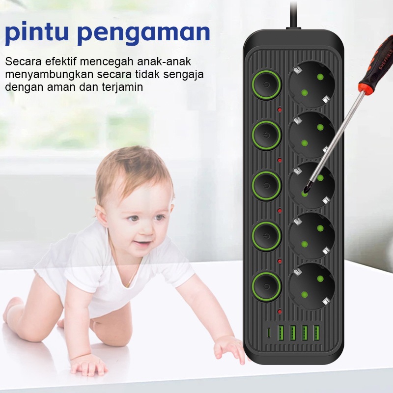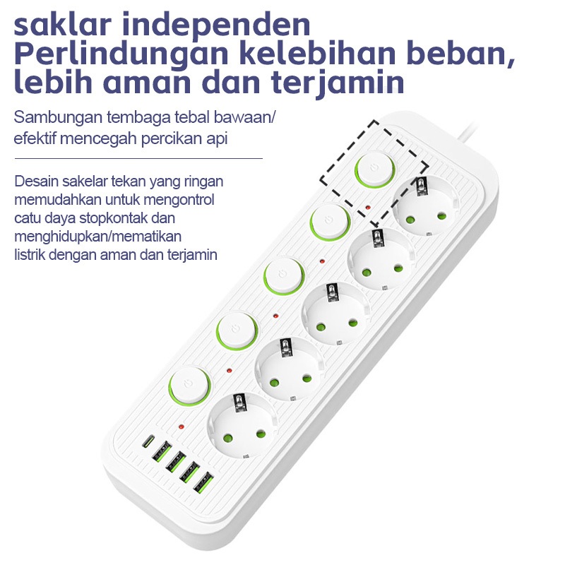 2500W Colokan Listrik Panjang 2/3/5 Meter Stop Kontak Kabel Saklar On Off dengan 3/4/5/6 Lubang Ber-SNI