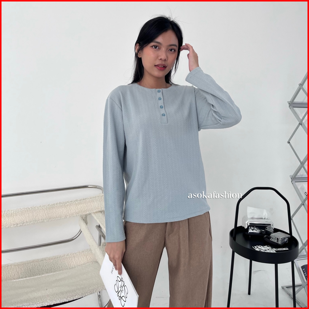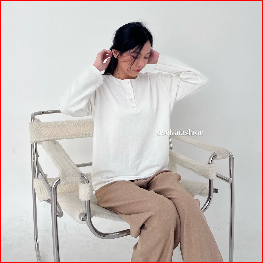 Asoka Zelda Top 616 - Longsleeve Oneck Knit - Atasan Wanita Kaos Button