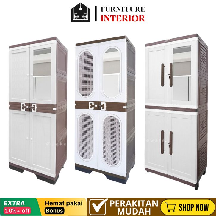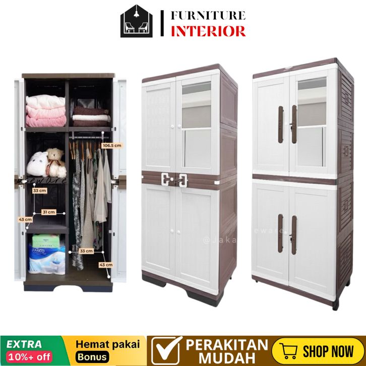 Lemari Pakaian CLUB Jumbo Hanger dan Rak 4 susun Kunci Kaca lemari pakaian plastik serbaguna minimalis