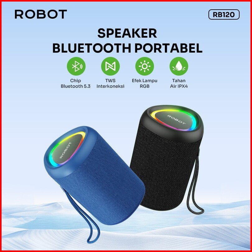 Robot Rb120 Speaker Bluetooth 5.3 Rgb Waterproof Ipx4 Tws Interkoneksi
