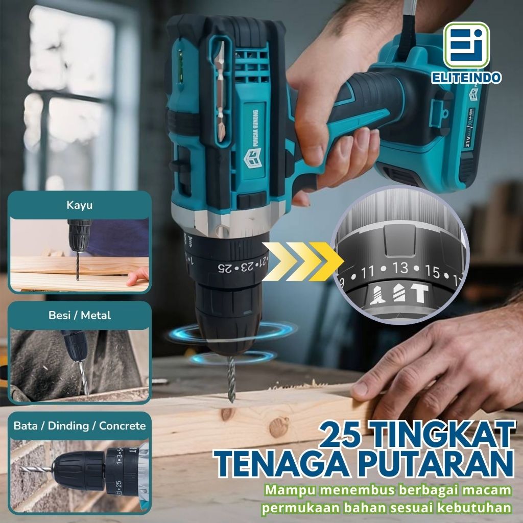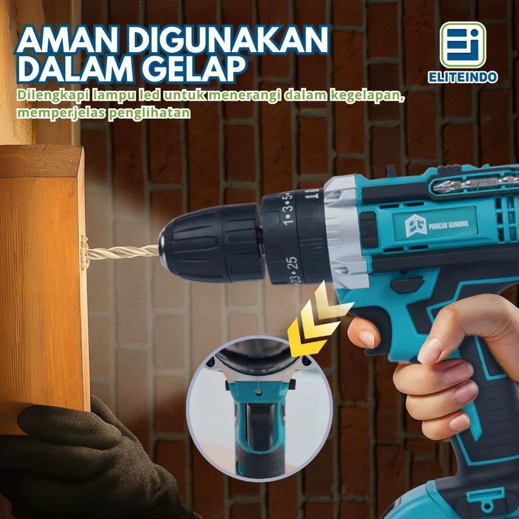 ELITE Set Mesin Bor 2 Baterai 50Pcs in 1 Toolkit Lengkap Perkakas Cordless Drill Impact Alat Listrik