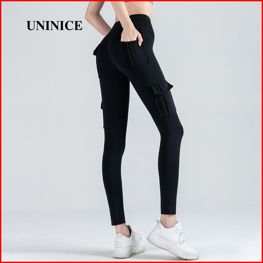 Uninice Legging Wanita Celana Olahraga Highwaist Yoga Celana Running Wanita Legging Cargo Olahraga
