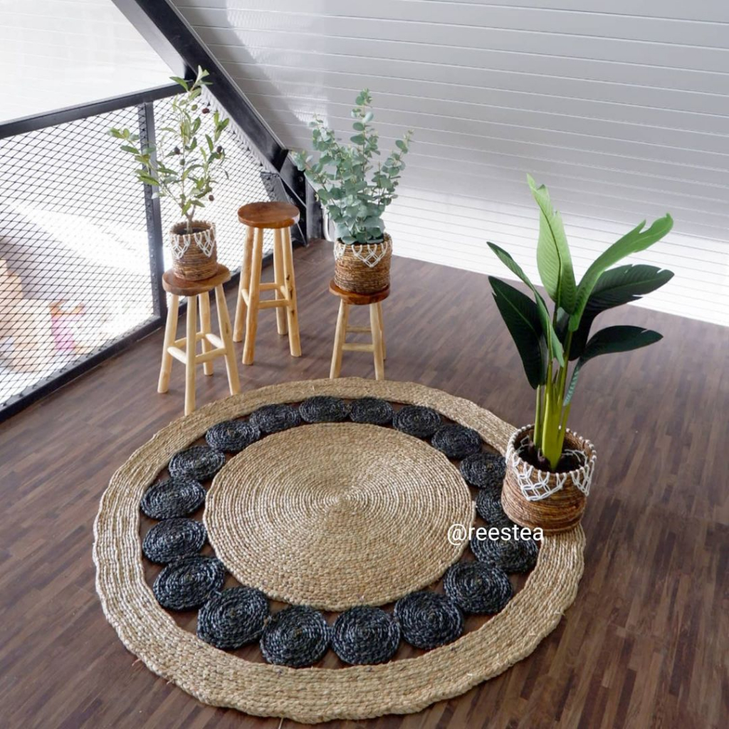 Size 120cm Karpet anyam mendong dengan Serat Natural/ Rug anyam