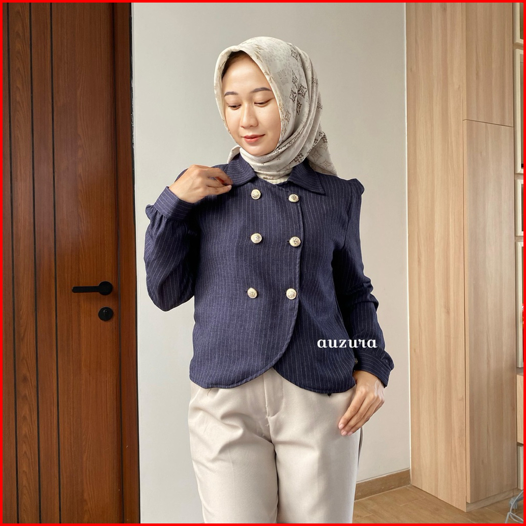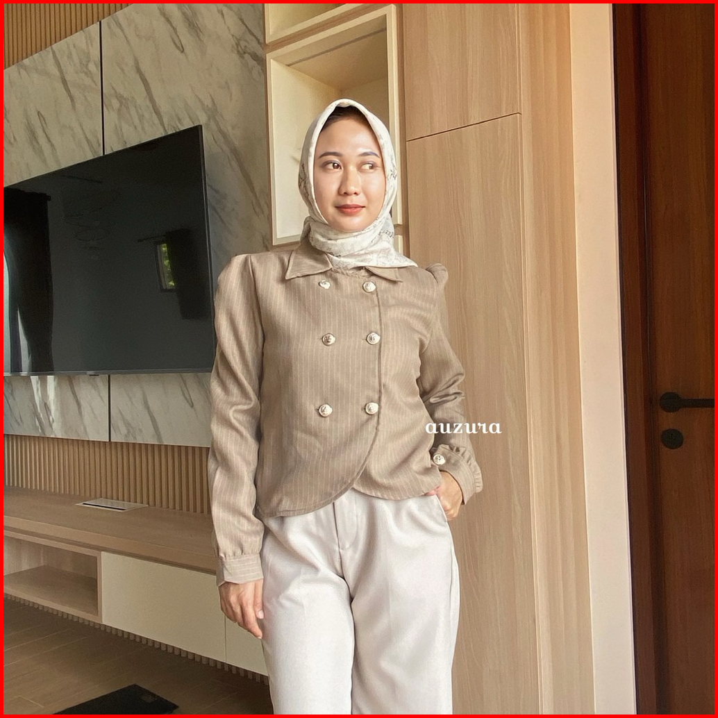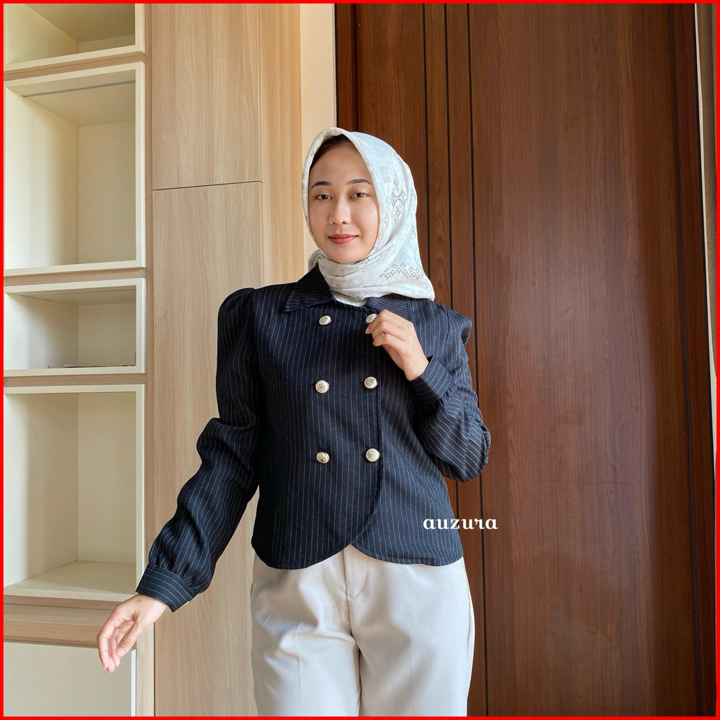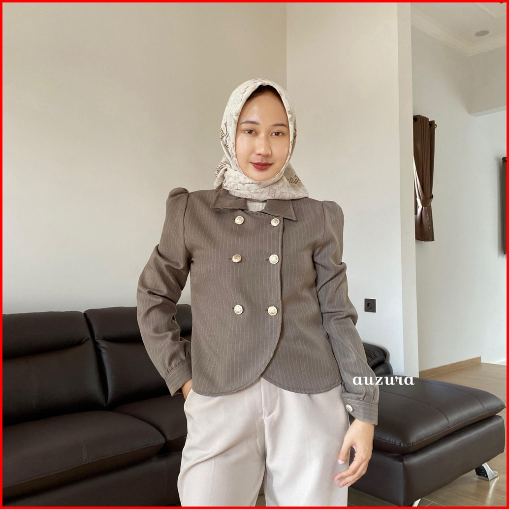 Auzura - Emi Blazer 448 Crop Puffy Stripe Semiwoll Button Casual Formal Office