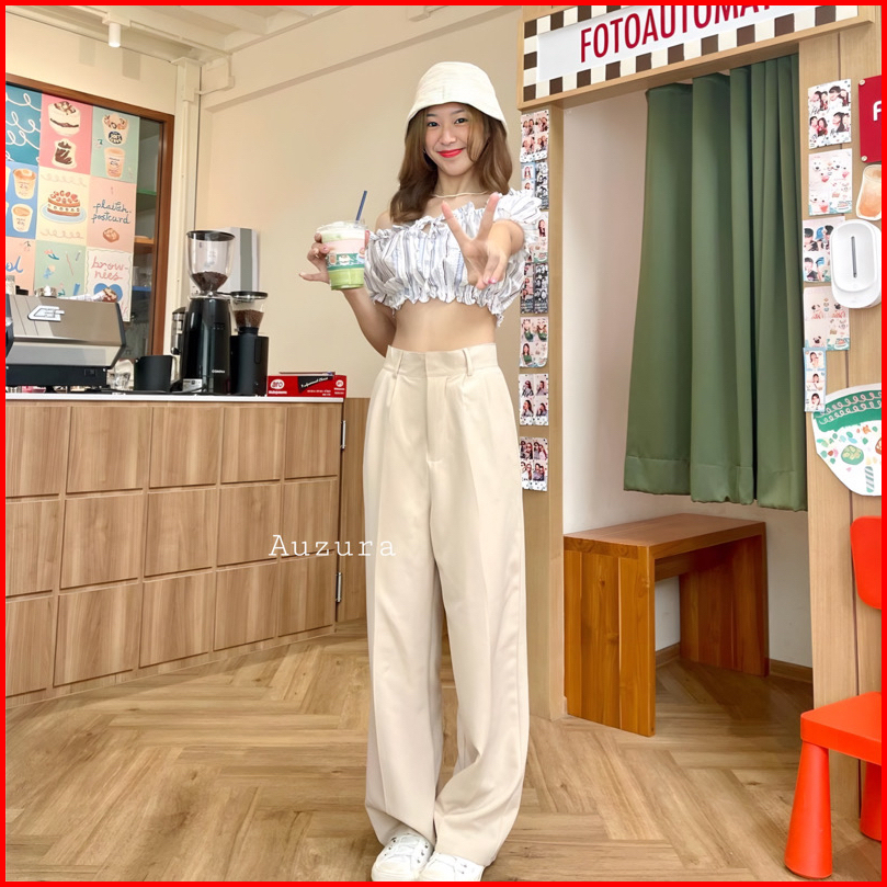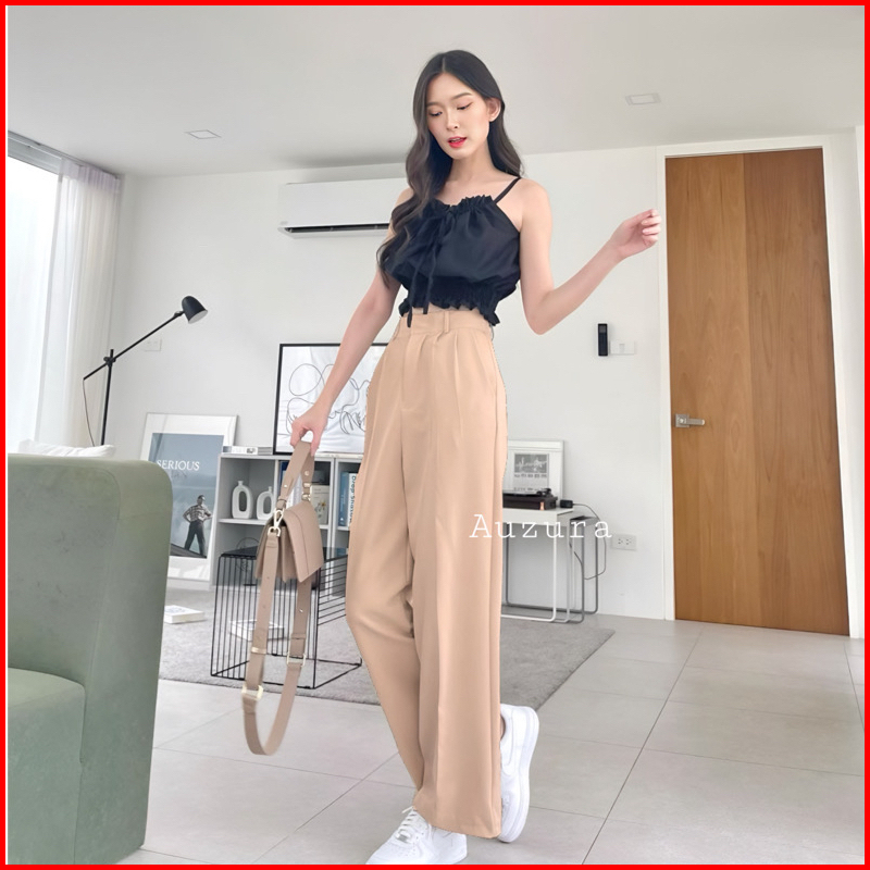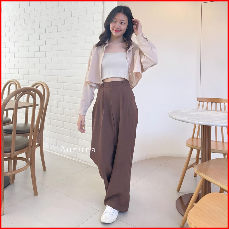 Loose Pants 999 Trousers Wanita Pengait - Celana Kulot Wanita - Celana Kantor Formal Casual Polyester Jatuh Flowy