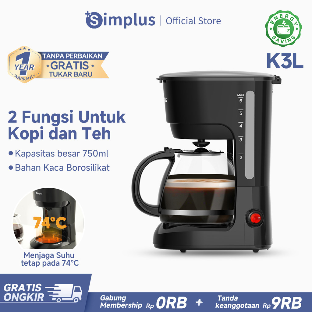 Simplus Mesin Kopi Tipe Drop Peralatan Rumah Tangga 750ml 2 Fungsi Untuk Kopi dan Teh