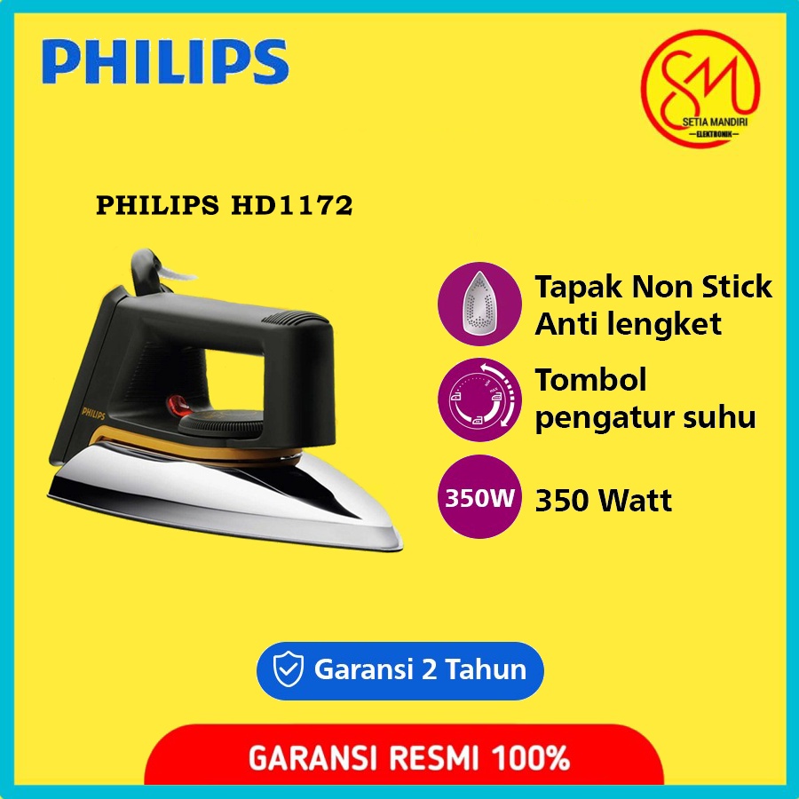 PHILIPS HD1172 HD1173 Setrika Kering Classic Cepat dan Efisien 350 W HD 1172 1173
