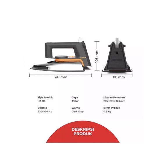Maspion HA 110 / HA 390 / EX 2010 / HA 111/ HA 365/ HA 380 Setrika Listrik / Gosokan Body Stenles Original