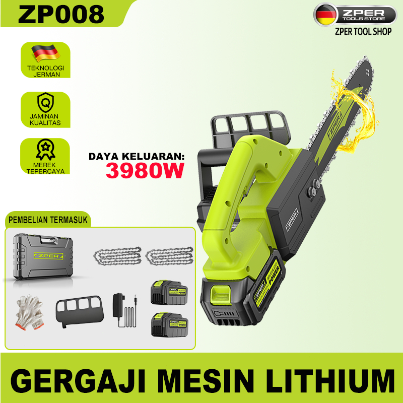 ZPER 12‘’ / 16‘’ Cordless Chainsaw Gergaji Mesin Lithium Gergaji Rantai Elektrik Portable Genggam Lithium