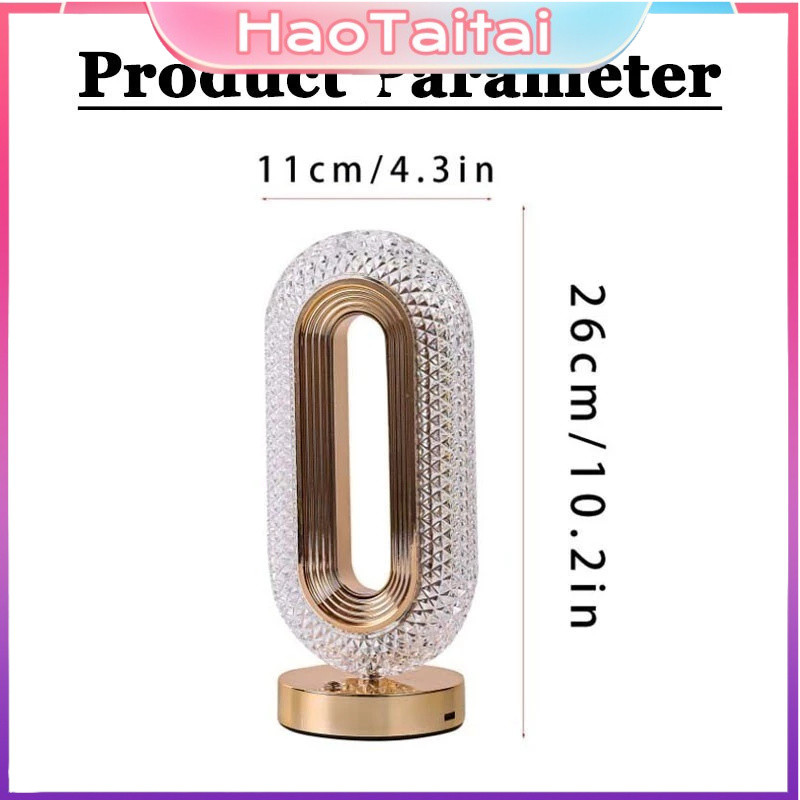 Lampu Meja Hias Aesthetic Acrylic Crystal LED Desk Lamp 3 Warna Peredupan Sentuhan Cahaya Cocok Lampu Tidur, Lampu Baca