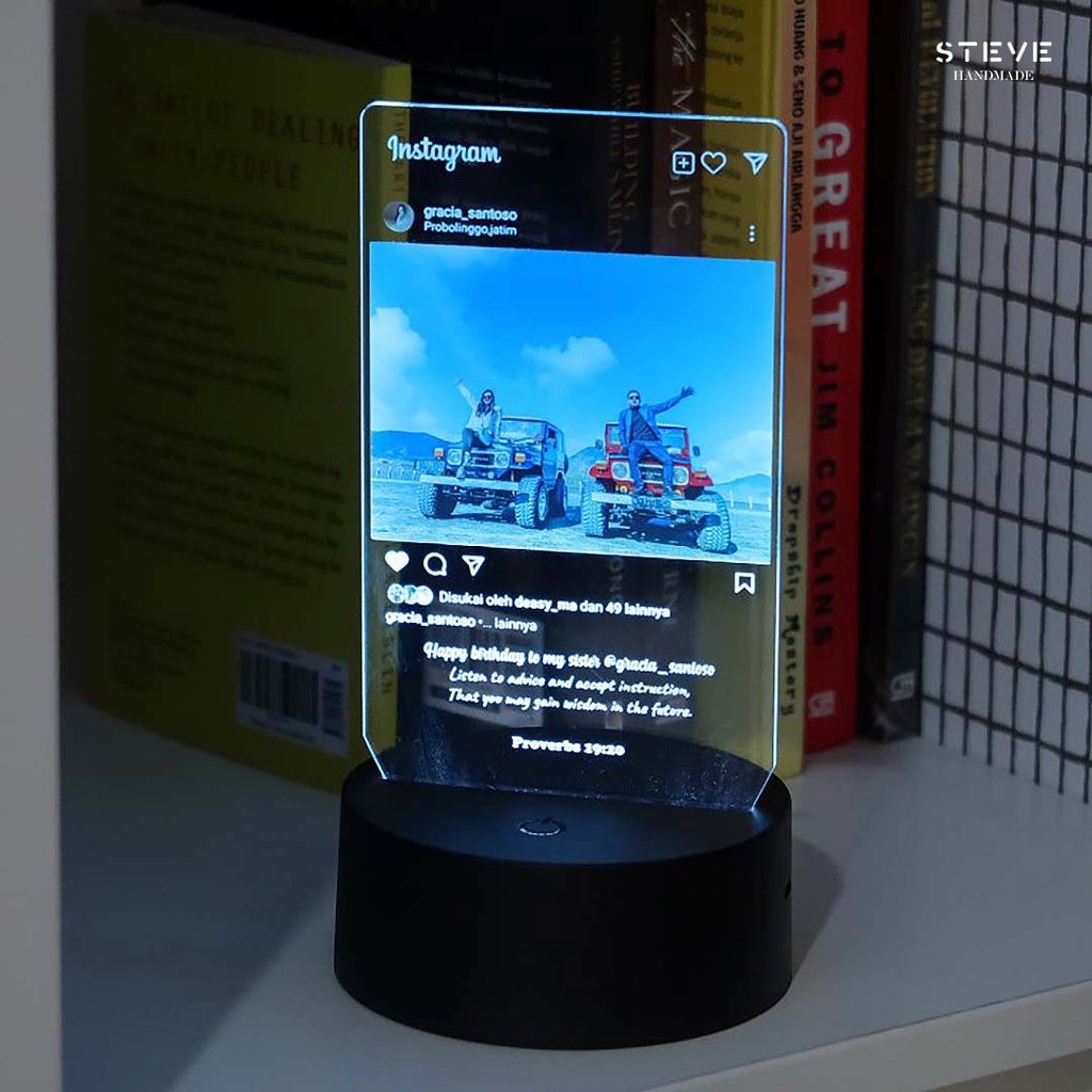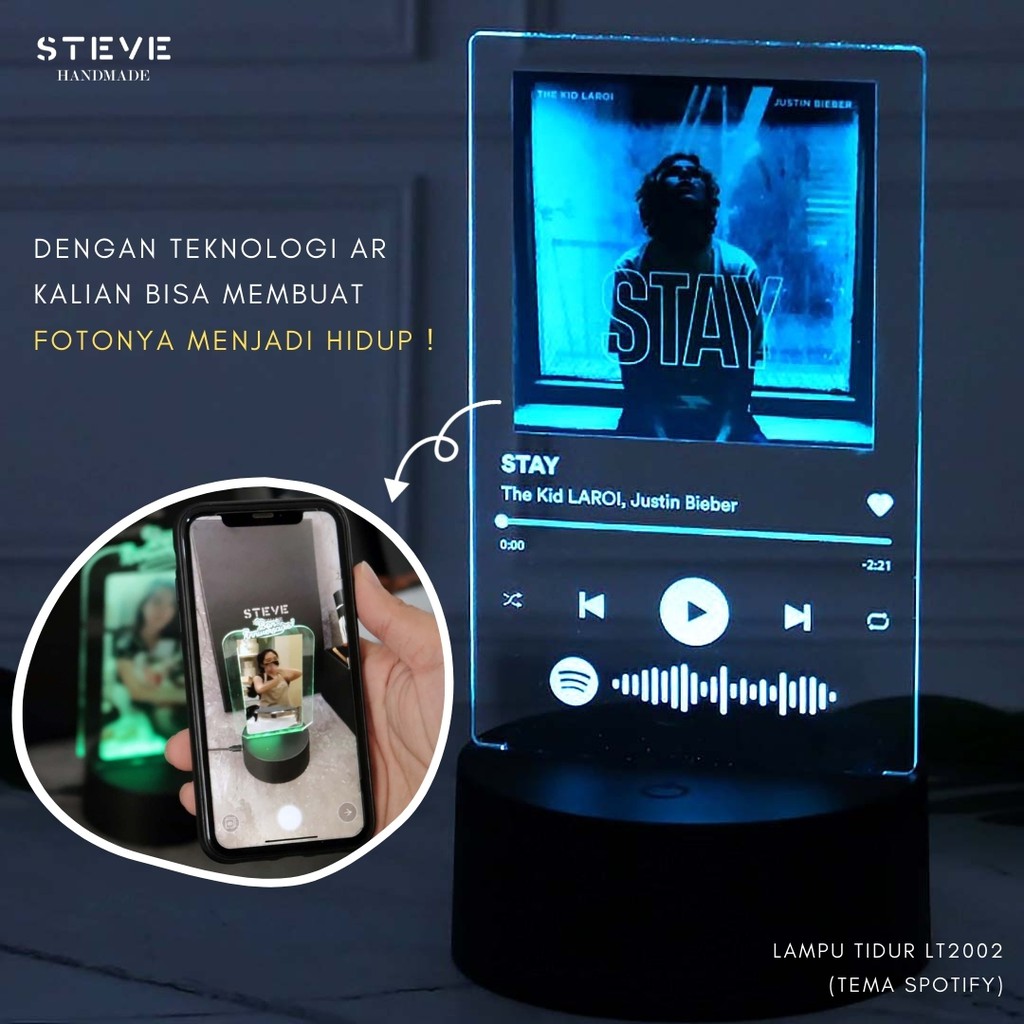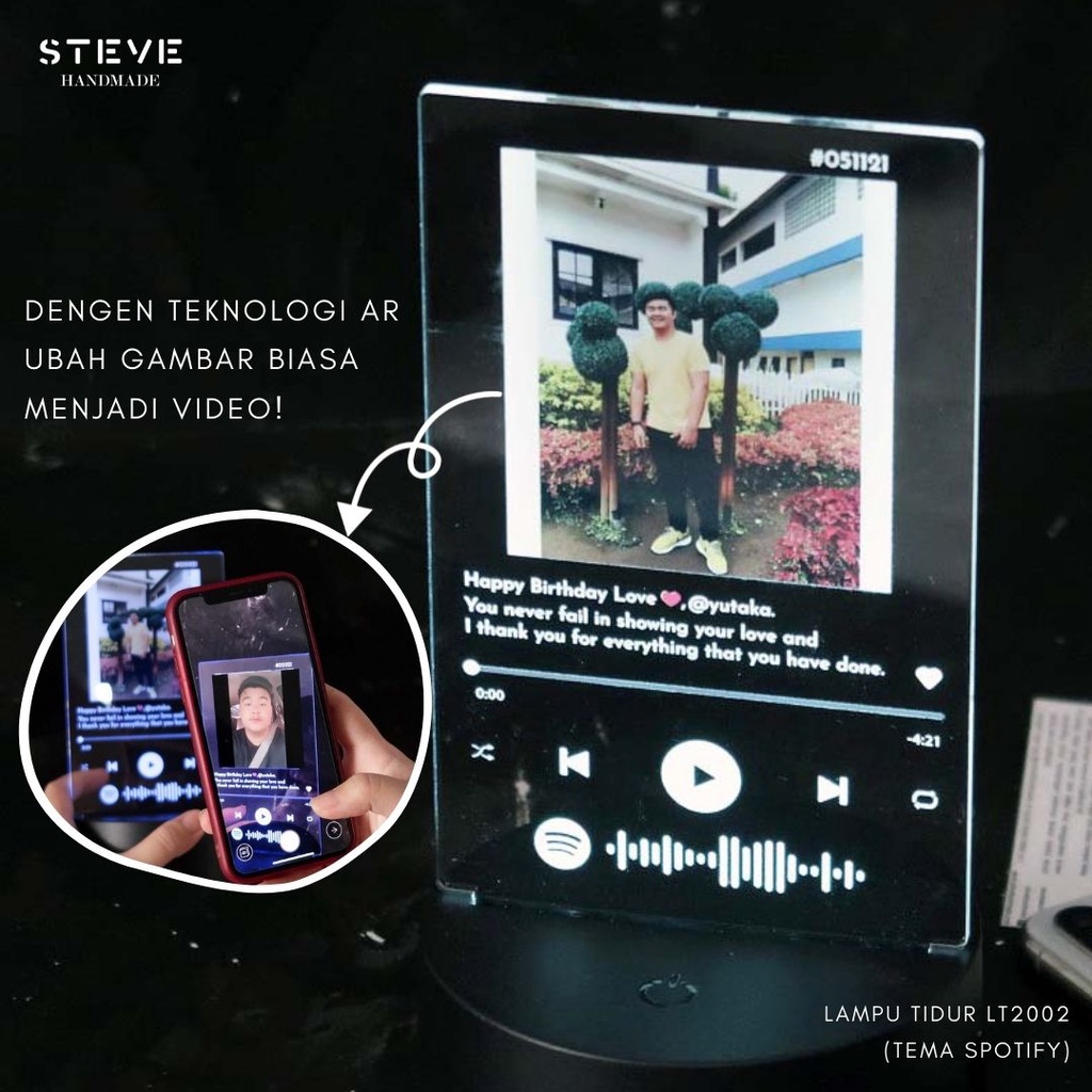Lampu Tidur LS2002 Augmented Reality LED Akrilik 12 warna RGB + Remote + Battery Custom Foto Nama