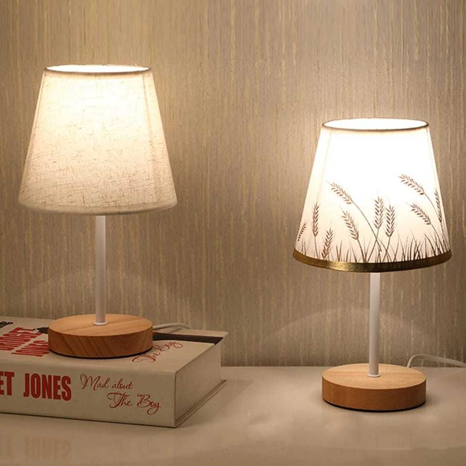 Nomaid.id - Lampu Tidur Aesthetic TA048 - Lampu Meja Vintage Classic Motif Kayu - Vintage Bed Lamp
