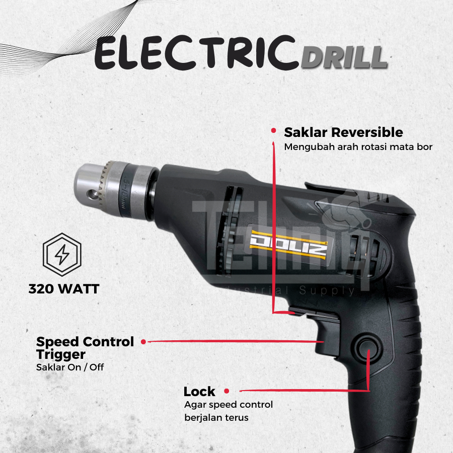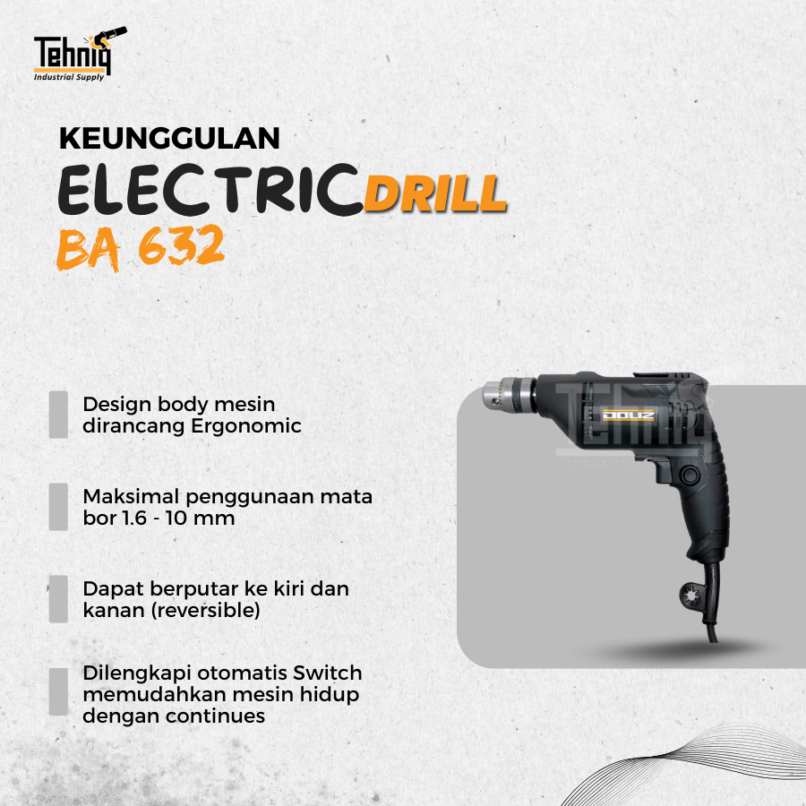 Doliz BA632 Mesin Bor Listrik Reversible Hand Drill 10MM