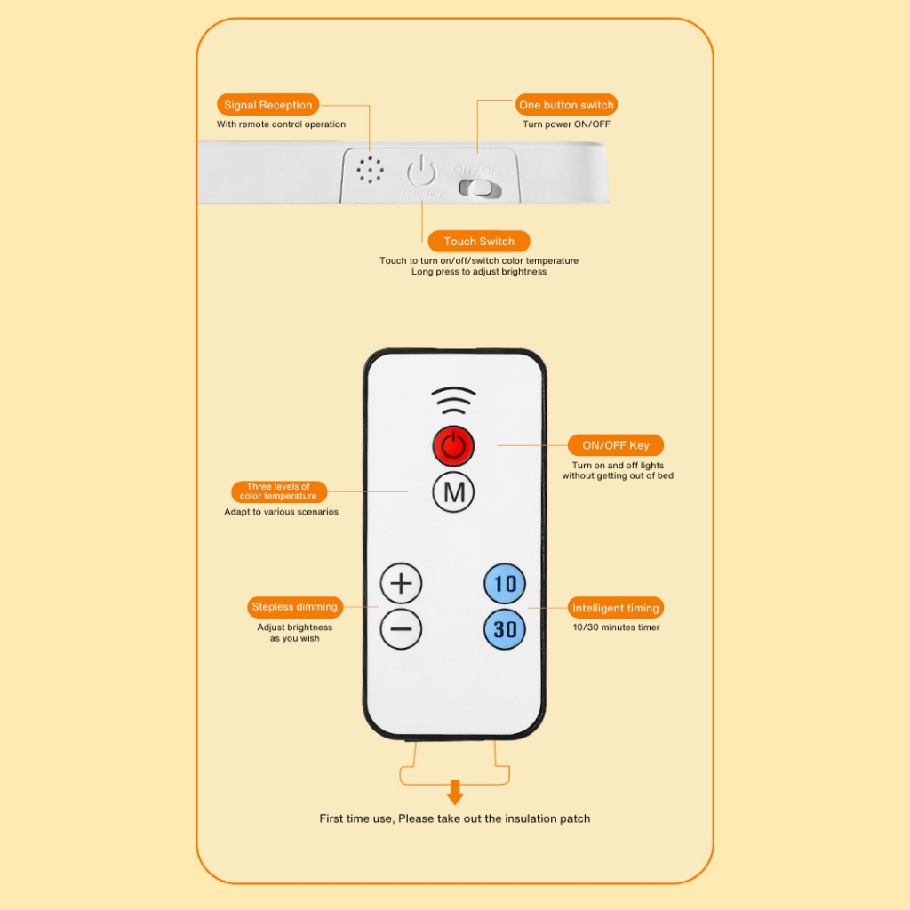 UPLU Lampu Tidur LED Light Bar Sensor Magnetic Portable Rechargable USB 3 Color With Remote Control
