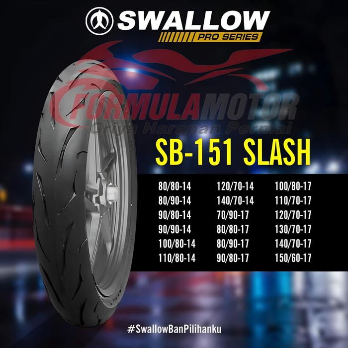 SWALLOW SLASH RING 14 TUBELESS ALL SIZE (PROFIL DONAT SOFT COMPOUND) BAN MOTOR MATIC TUBLES SB151 SB-151 (80/80-14, 80/90-14, 90/80-14, 90/90-14, 100/80-14, 110/80-14, 120/70-14, 140/70-14) - 90/90-14