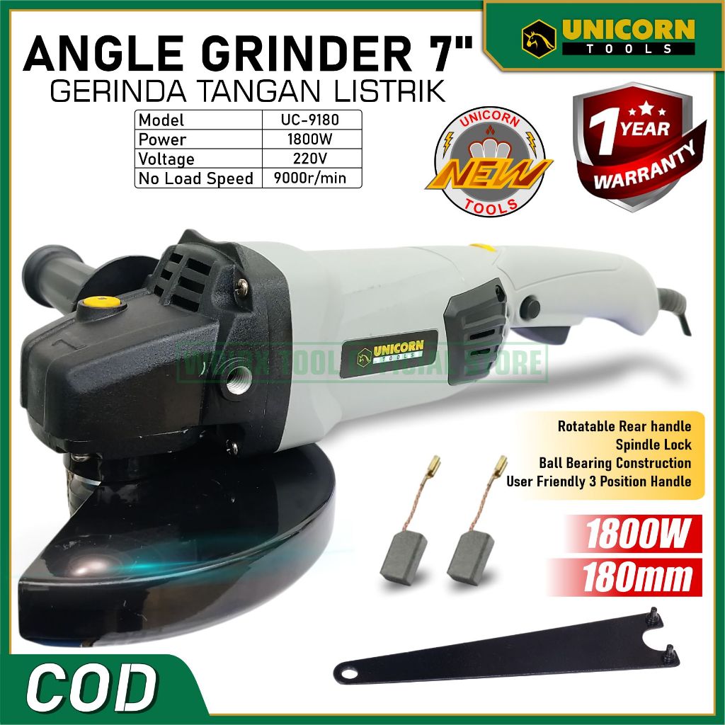 UNICORN TOOLS Angle Grinder 5 6 7 inch 860W 980W 1280W 1800W Gerinda Tangan Listrik
