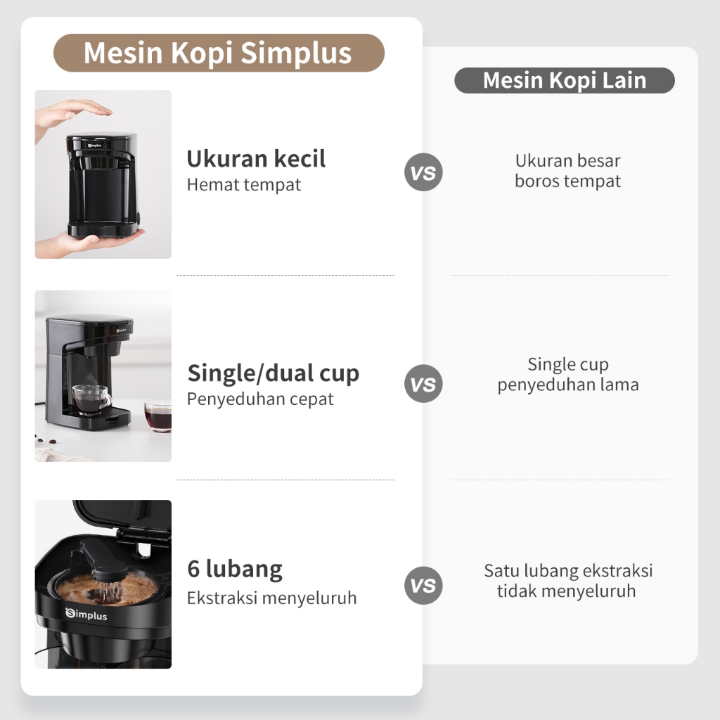Simplus Mesin Kopi Rumahan Mesin Kopi Filter Satu Tombol Dual Cups Coffee Maker