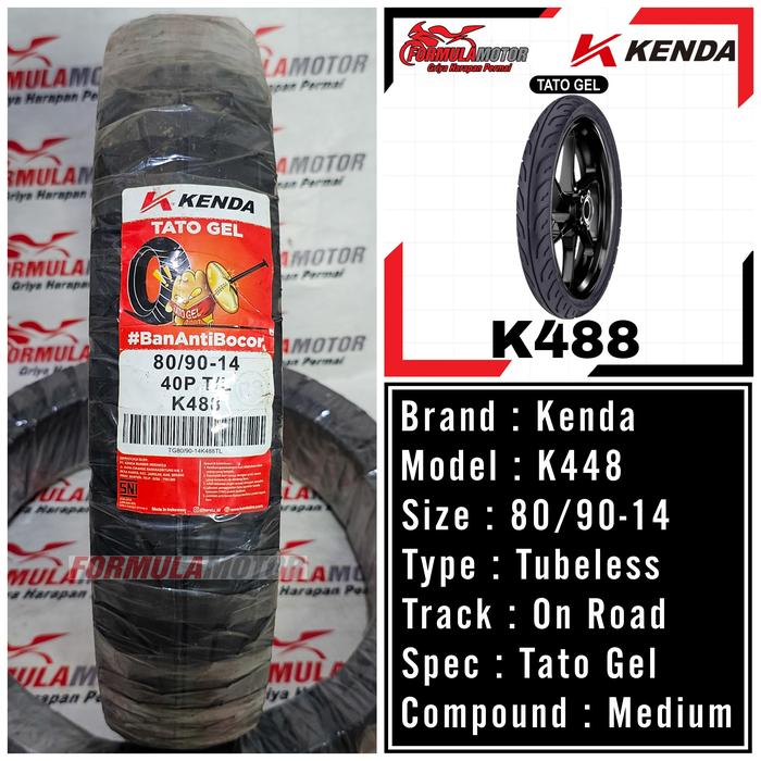 KENDA K488 RING 14 TATO GEL (ANTI BOCOR) BAN TUBLES MOTOR MATIC UKURAN 70/90, 80/80, 80/90, 90/90, 100/70 - 80/80-14