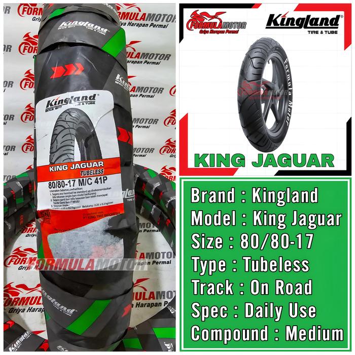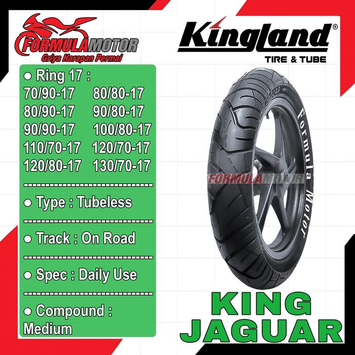 KINGLAND KING JAGUAR RING 17 TUBELESS ALL SIZE - BAN TUBLES MOTOR BEBEK/SPORT UKURAN 70/90, 80/80, 80/90, 90/80, 90/90, 100/80, 110/70, 120/70, 120/80, 130/70 - 80/80-17