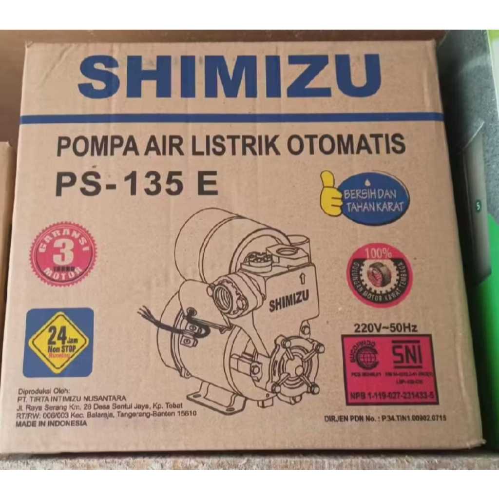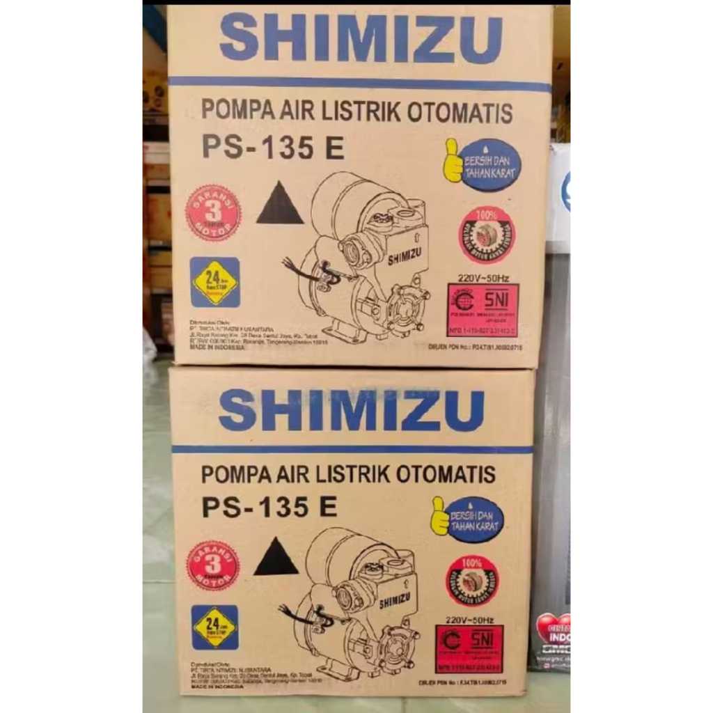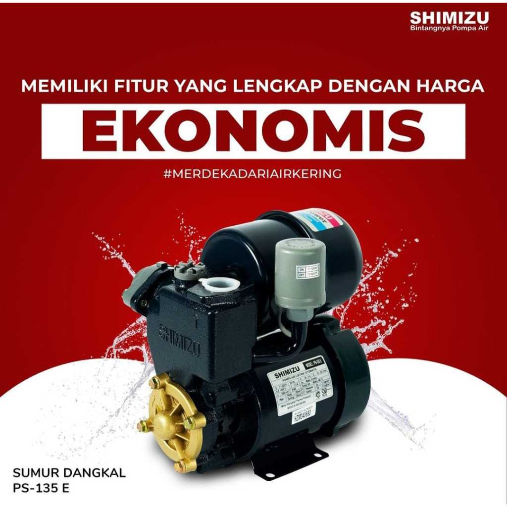 Pompa Air Shimizu PS-135 E 125W-Otomatis, Hemat Energi, Cocok untuk Sumur Dangkal dan Rumah Tangga