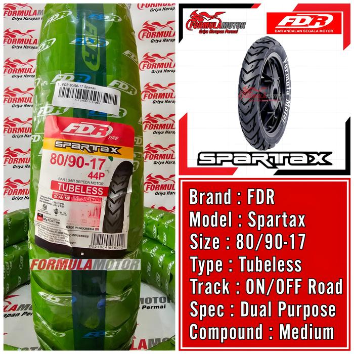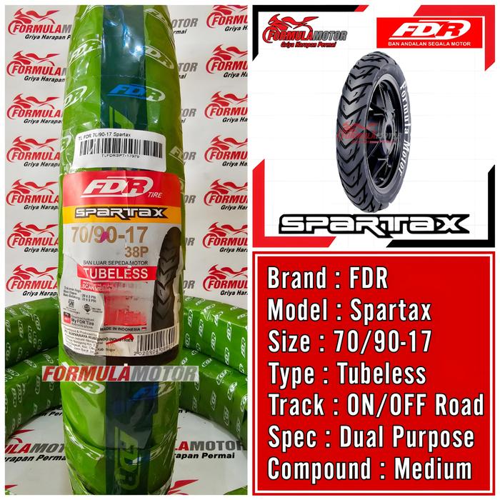 BAN FDR RING 17 TUBELESS ALL TYPE (FLEMMO PRO/GENZI PRO/SPARTAX/SPORT XR EVO) BAN TUBLES MOTOR BEBEK/SPORT [UKURAN 70/90, 80/90, 70/80, 80/80, 90/80, 100/80, 120/80] - 70/90-17 SPARTAX