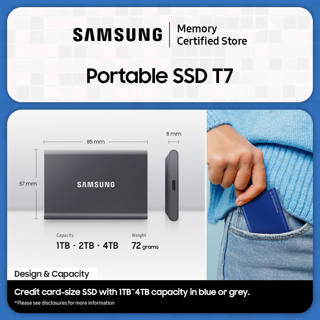 Samsung Portable SSD T7 USB 3.2 Gen 2 - SSD Eksternal - 1TB / 2TB / 4TB