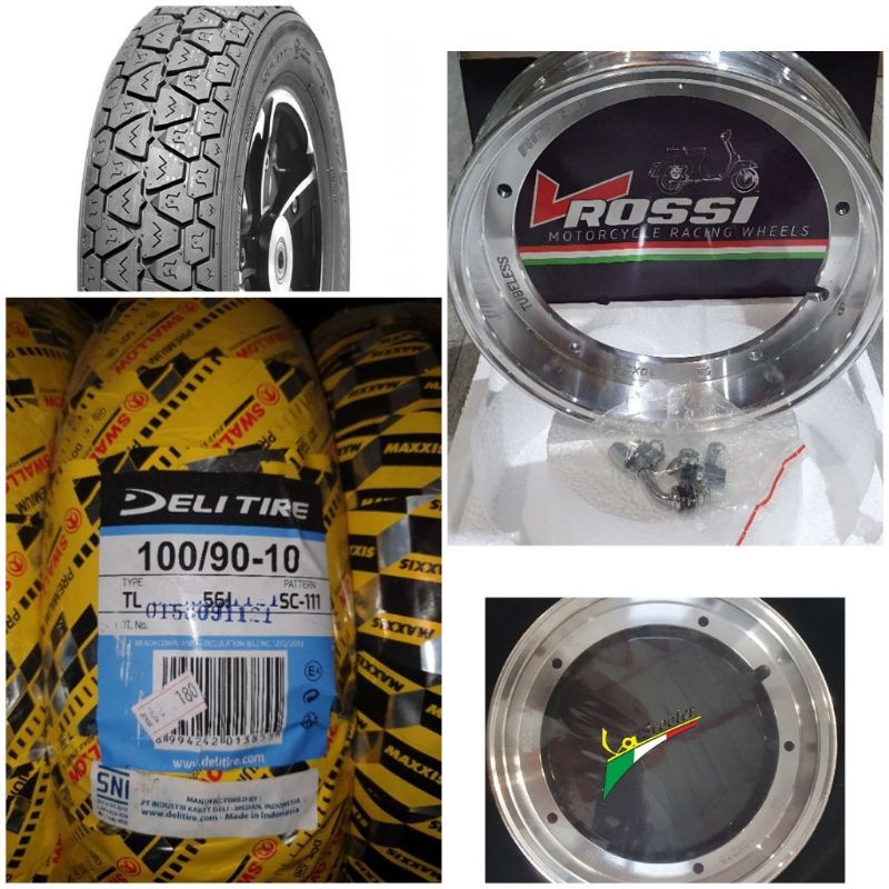 Paket Velg VROSSI Ring 10 X SWALLOW 100/90 - 10 Vespa classic Tubeless Original