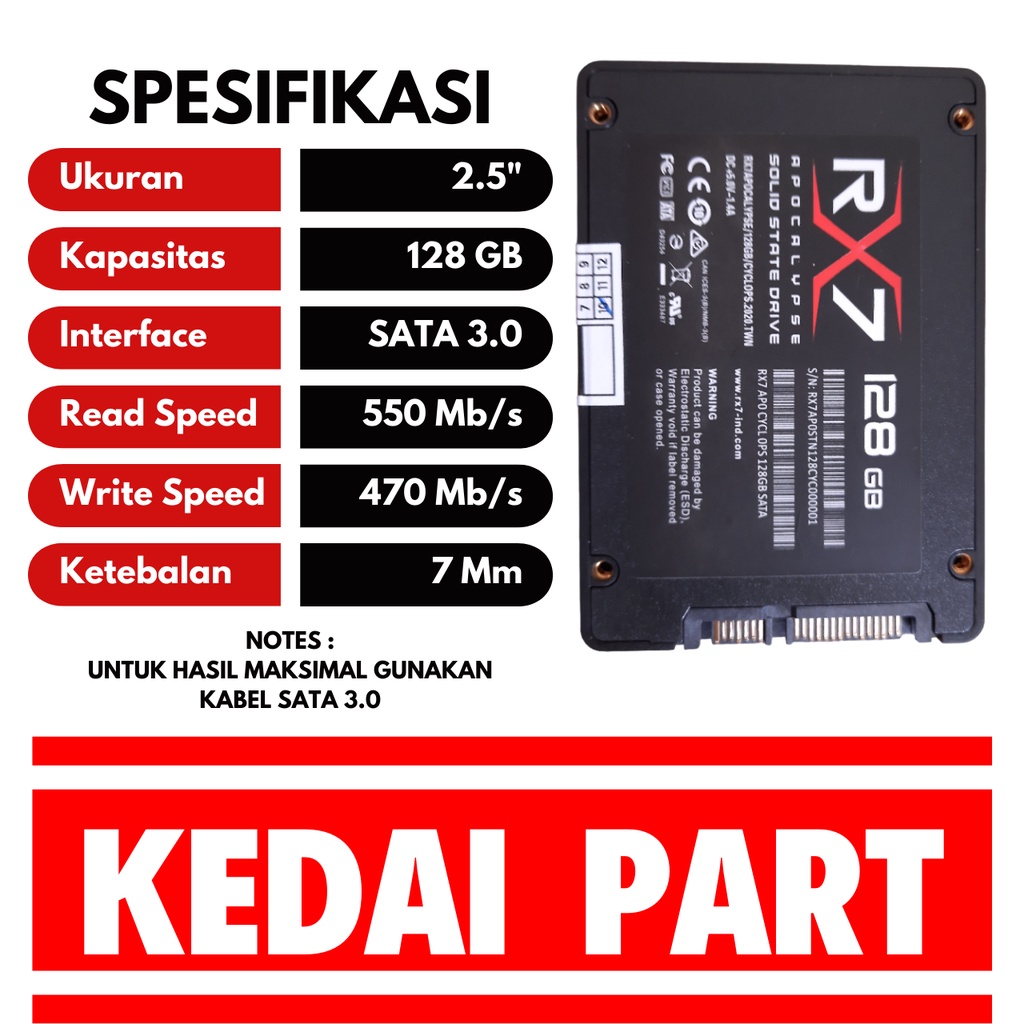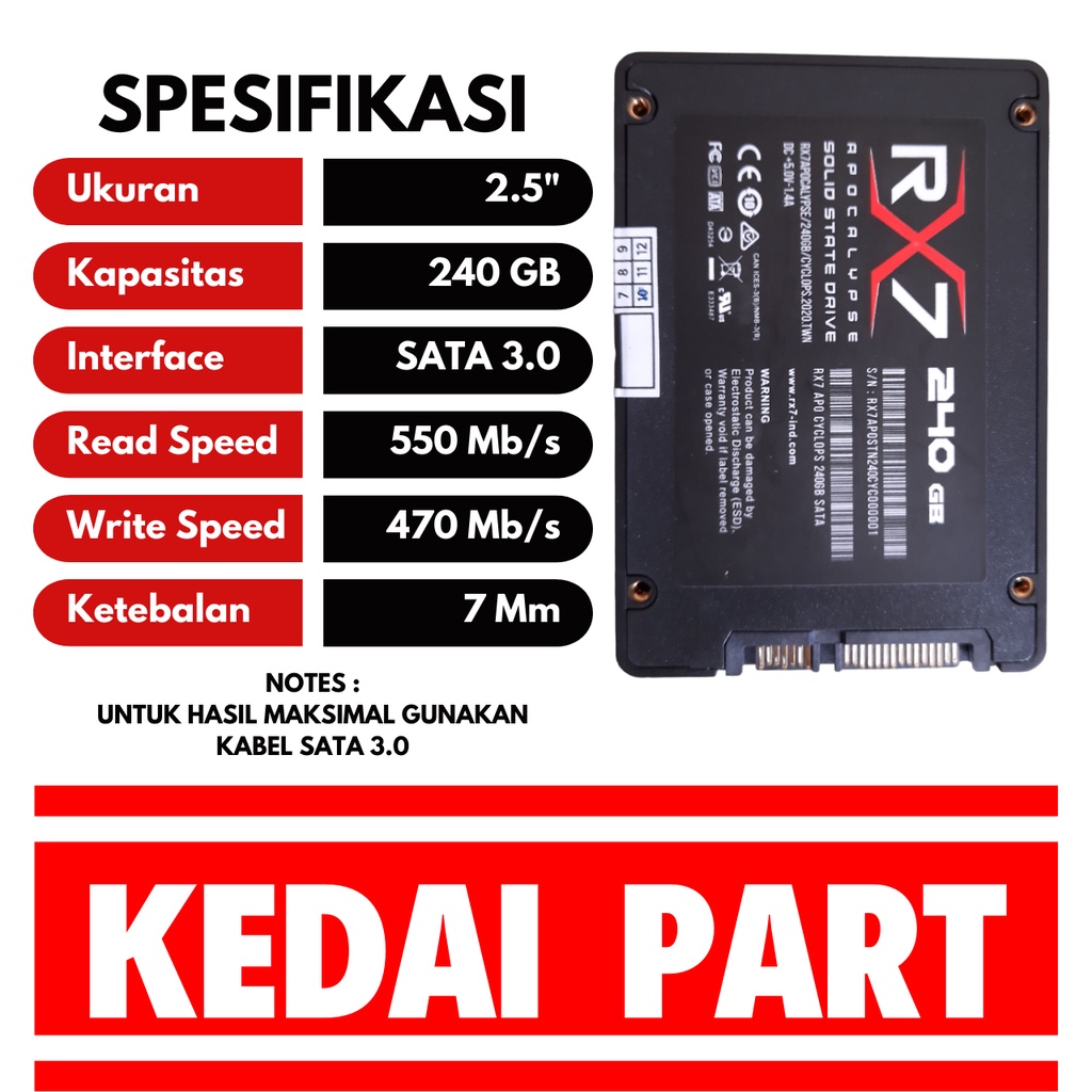 SOLID STATE DRIVE SSD RX7 GARANSI RESMI 3 TAHUN