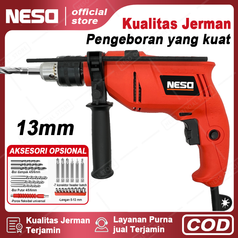 NESO German Tool Mesin Bor 13mm Listrik Impact Drill Electric Drill Bolak Balik Bor beton Bor besi