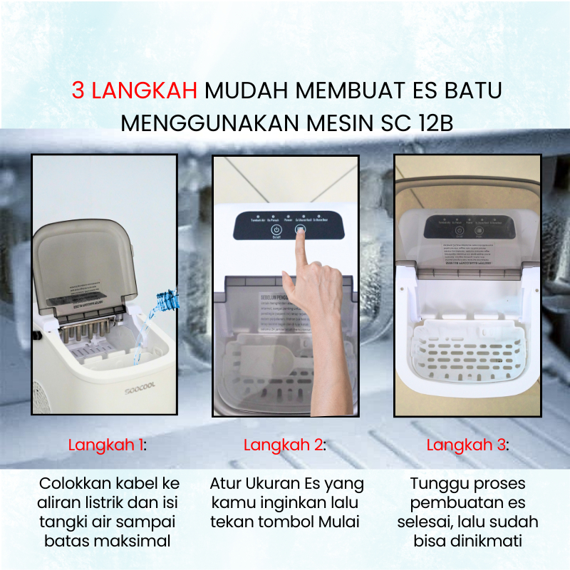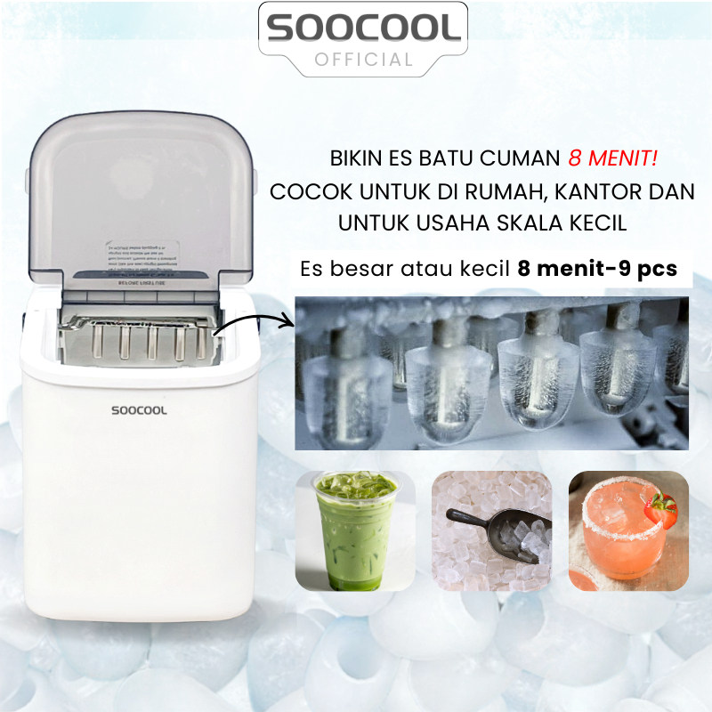 SOOCOOL SC-12B Mesin Pembuat Es Batu, Ice Maker Mini 1,1 Liter Mesin Es Batu Portable Praktis Dapur & Kantor