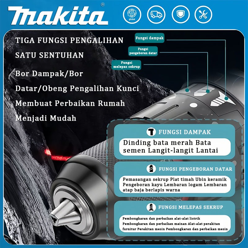 Makita 1850R/menit bor cordless cordless drill bor impact baterai impact drill mesin bor listrik