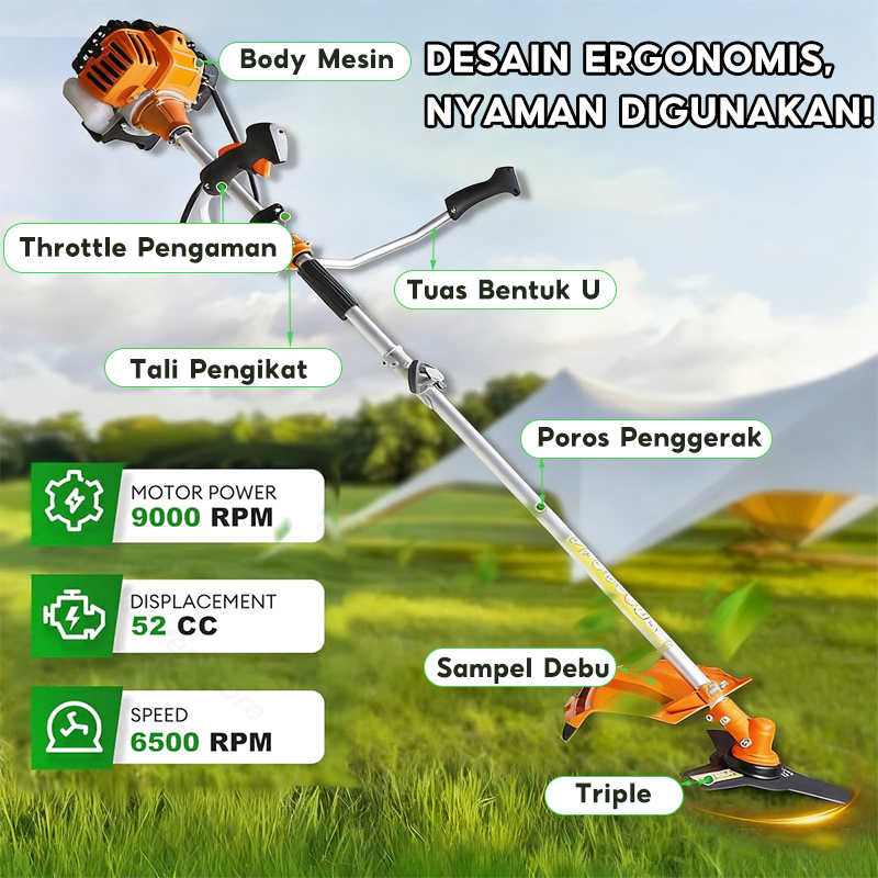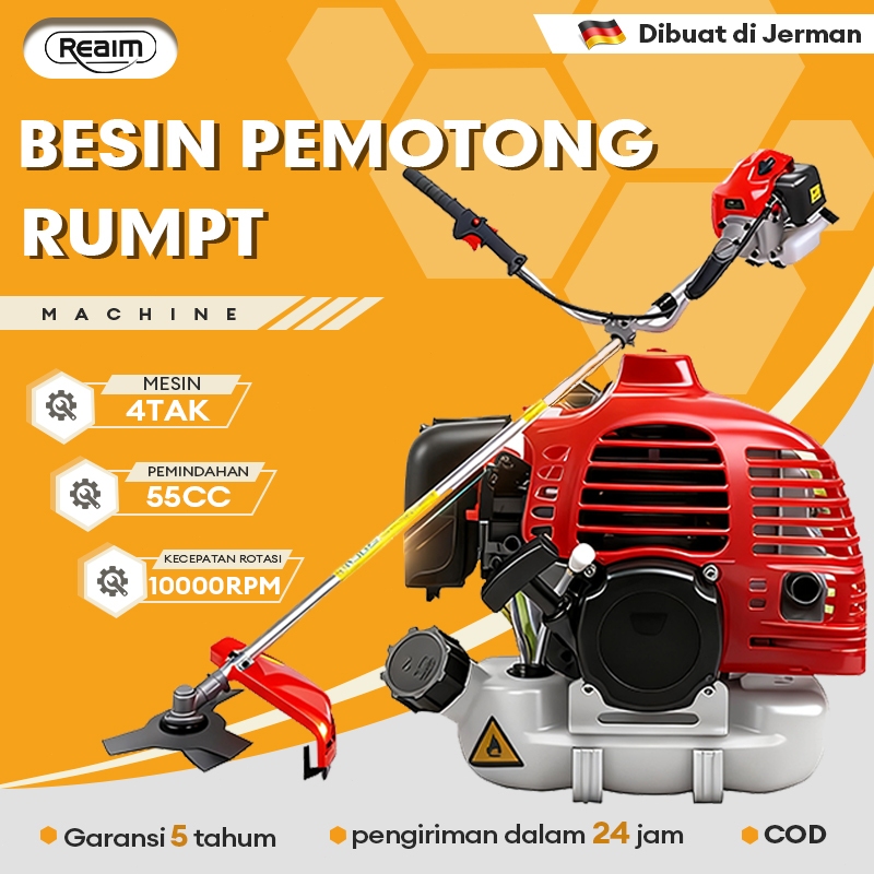 REAIM Mesin Potong Rumput 5200W Arit rumput 4 Tak Pemotong Rumput 55CC