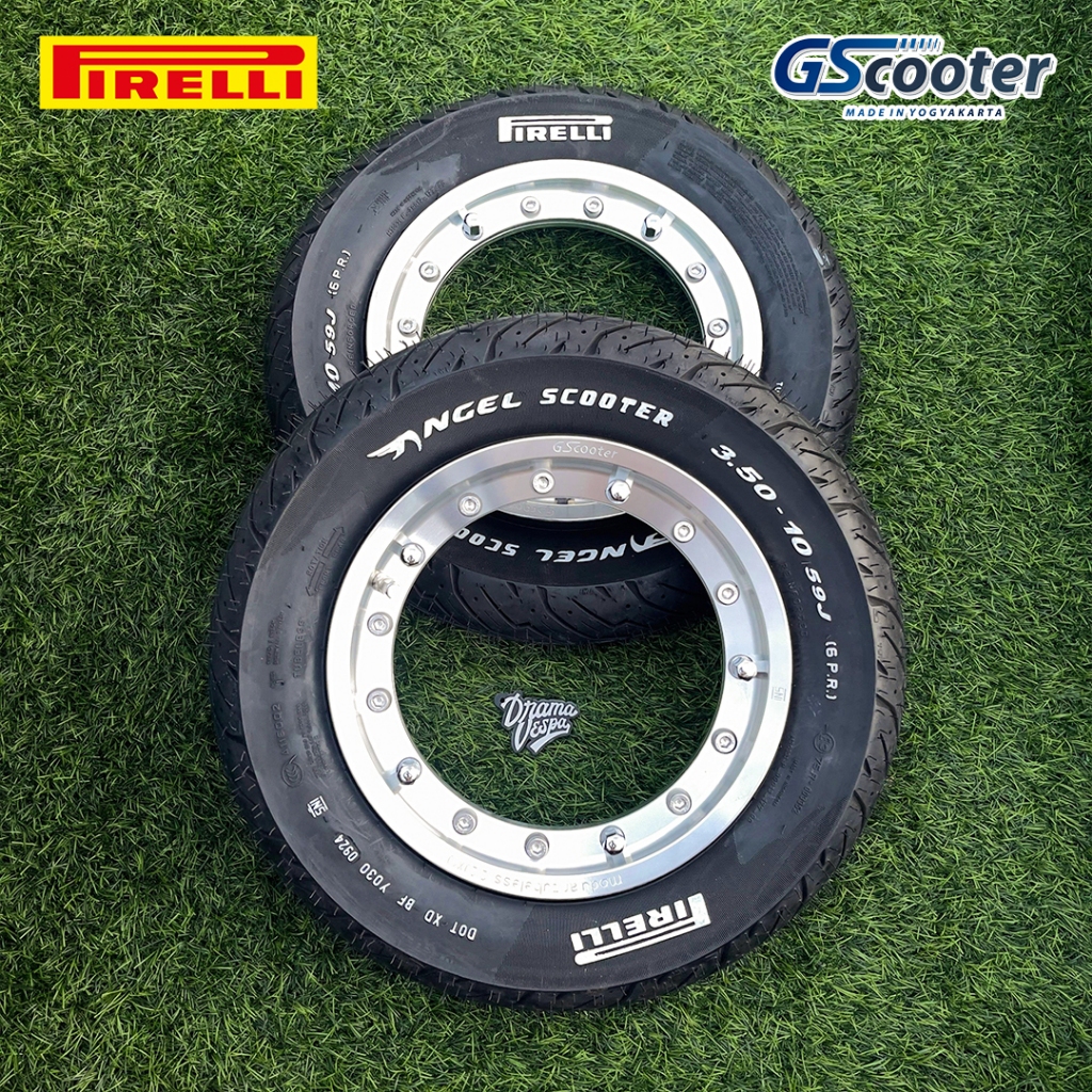 Velg Vespa Modular Polish GScooter ring 10 dan Ban Pirelli 350-10 Angel Scooter White Text | Drama Vespa