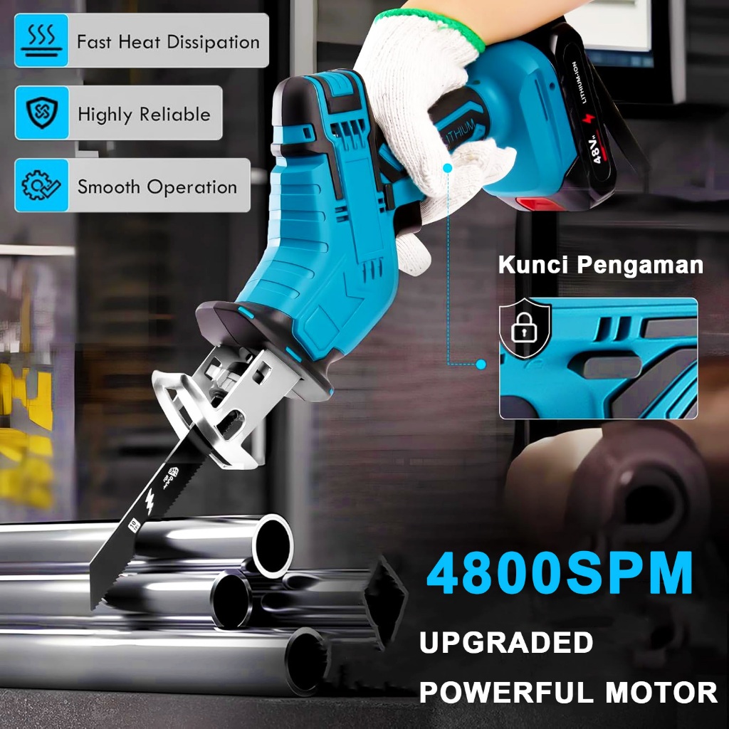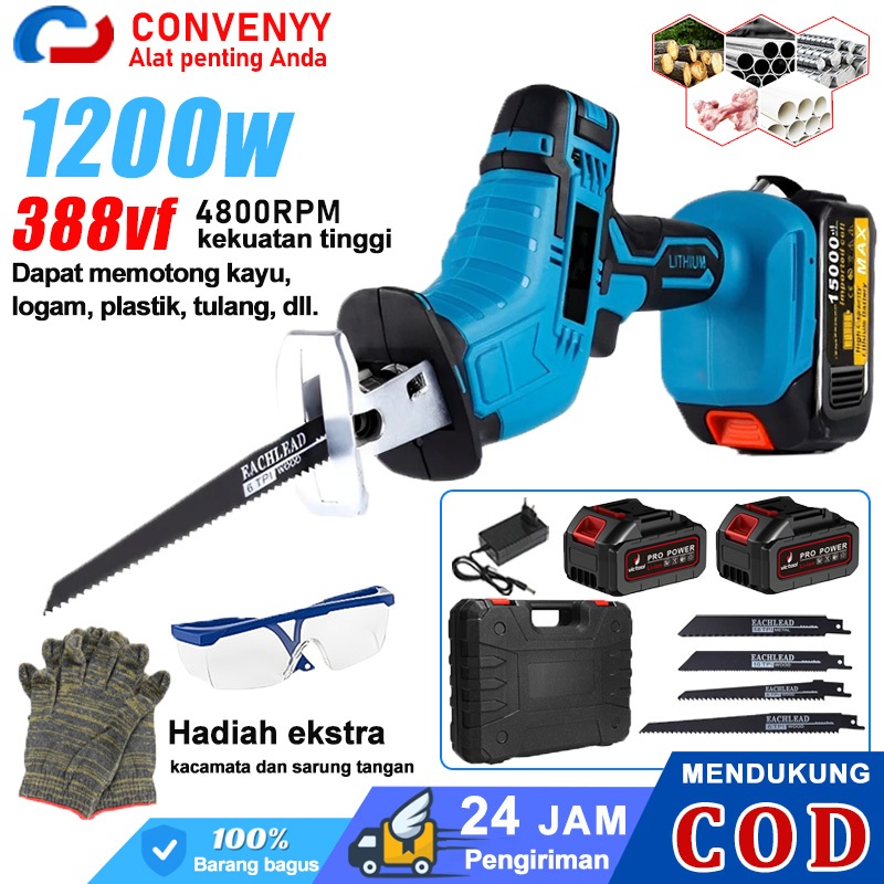 Convenyy Reciprocating saw cordless Gergaji mesin mini 4800rpm Gergaji Listrik Gergaji pedang bolak-balik 4 Mata Gergaji