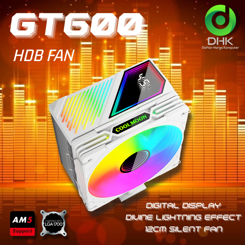 COOLMOON CPU COOLER GT600 ARGB DIGITAL TEMPERATUR DISPLAY FAN PROSESOR