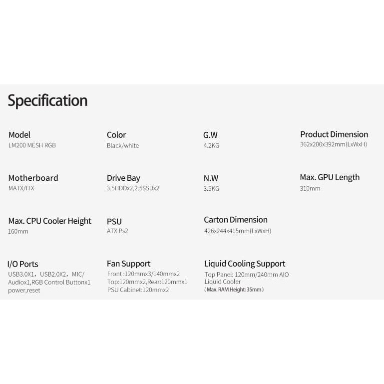 PCCOOLER PLATINUM LM200 MESH RGB GAMING CASE PC COOLER