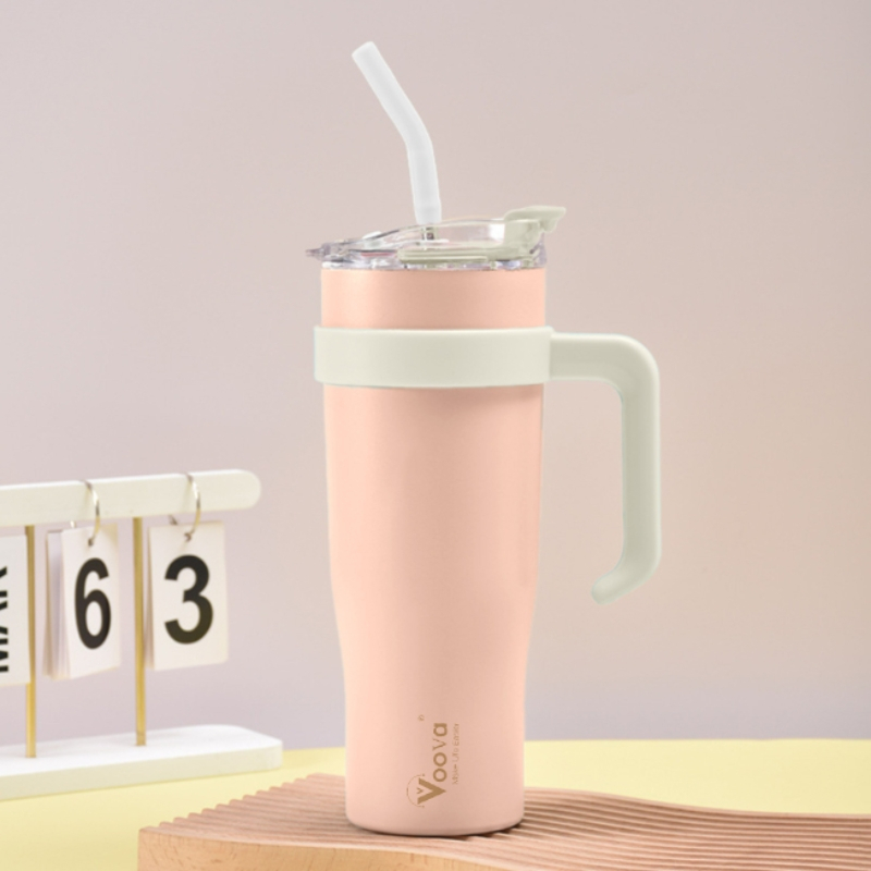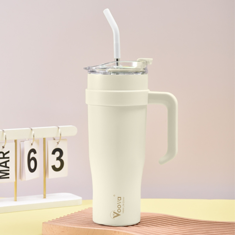 VOOVA 1250ML Botol Minum Stainless Steel Dengan Cangkir Stainless/304 Gelas Stainless Steel/Mug Berkapasitas Besar
