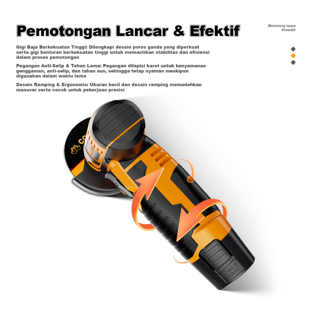 Corolla Portable angel Grinder Cordless 3 inci Mesin Gerinda Tangan Elektrik Gerinda Baterai Portable Alat Pemotong / Portable Angle Grinder 12V
