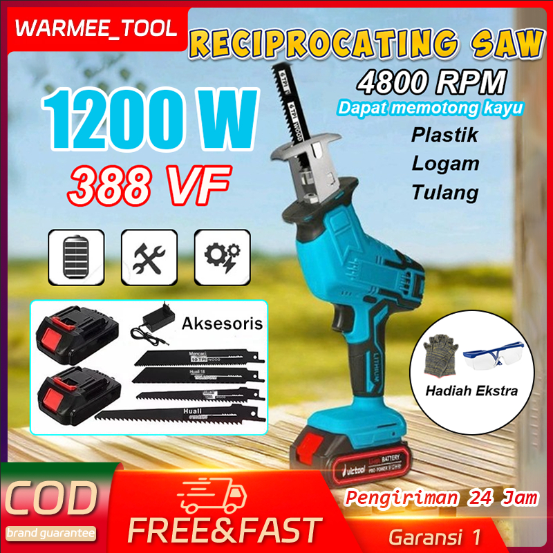 WARMEE Reciprocating Saw Cordless 1200W Gergaji Mesin Mini Pemotong Kayu Portable Gergaji Mesin Alat
