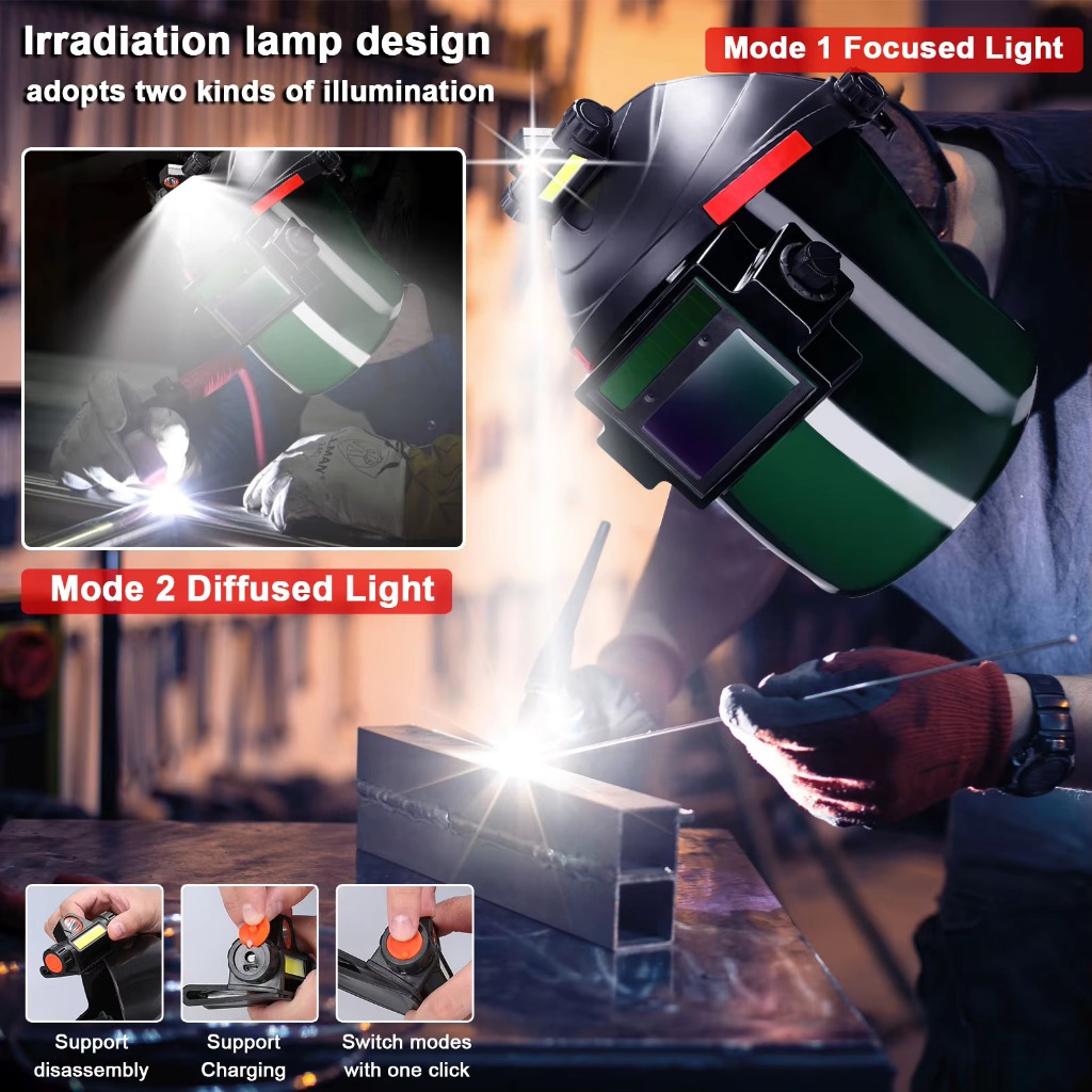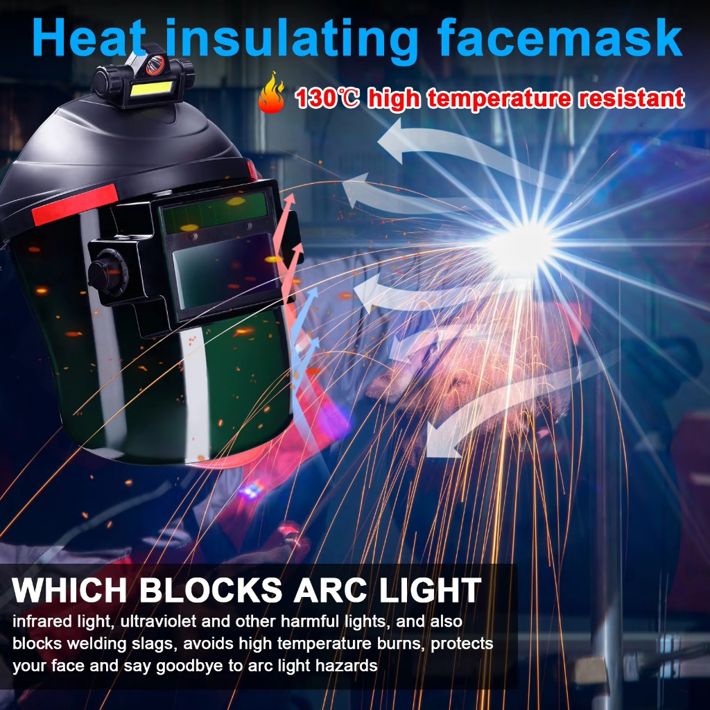 Topeng Helm Las Listrik Automatic Gelap Terang Full Wajah + Senter LED Welding Shield MZ300