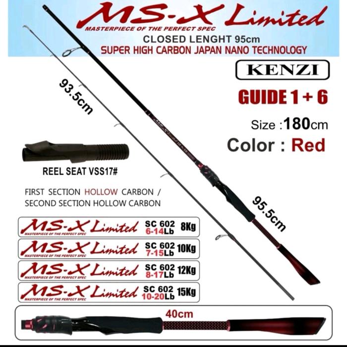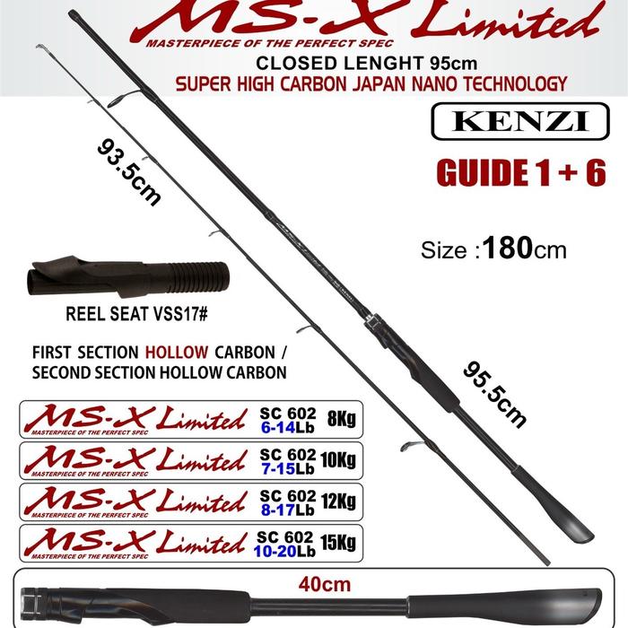Joran Kenzi MS X Limited 180 cm Hollow carbon 8 Kg 10 Kg 12 Kg 15 Kg Memancing Pancing Spinning - 6-14 Lbs 8 Kg, Hitam
