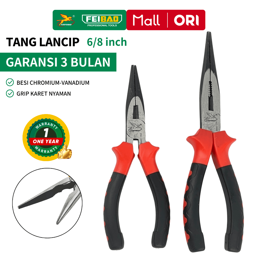 Feibao Tang Lancip Long Nose Pliers 6-8 Inch CR-V Steel kualitas terbaik perkakas profesional