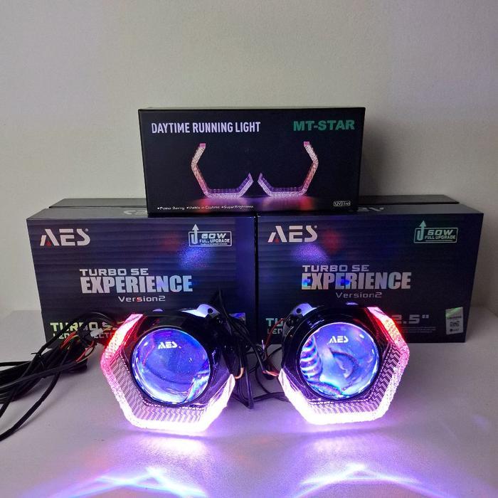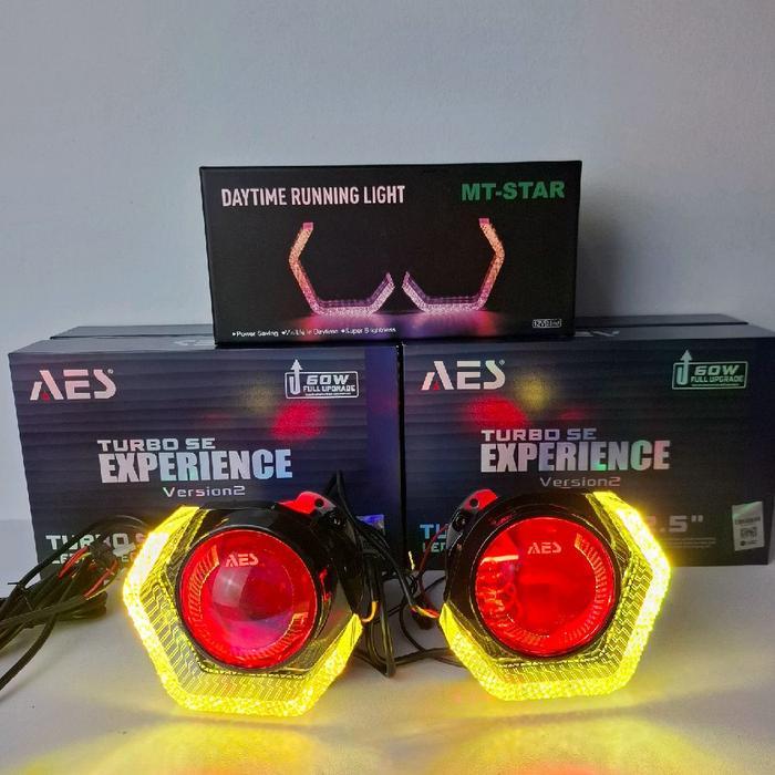 [Star]SEPASANG PAKET LENGKAP BILED AES EXPERIENCE V2 + SHROUD HEXA RGB 2,5 INCI UNTUK MOTOR DAN MOBIL - merah
