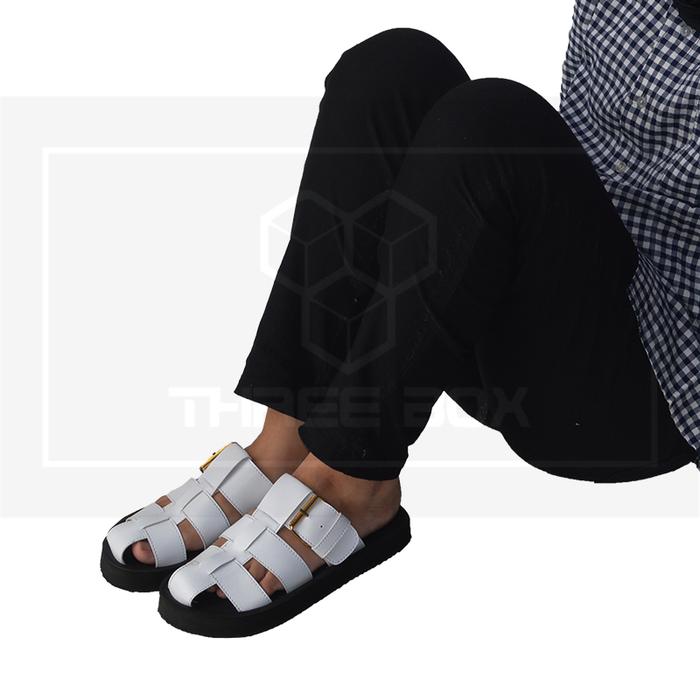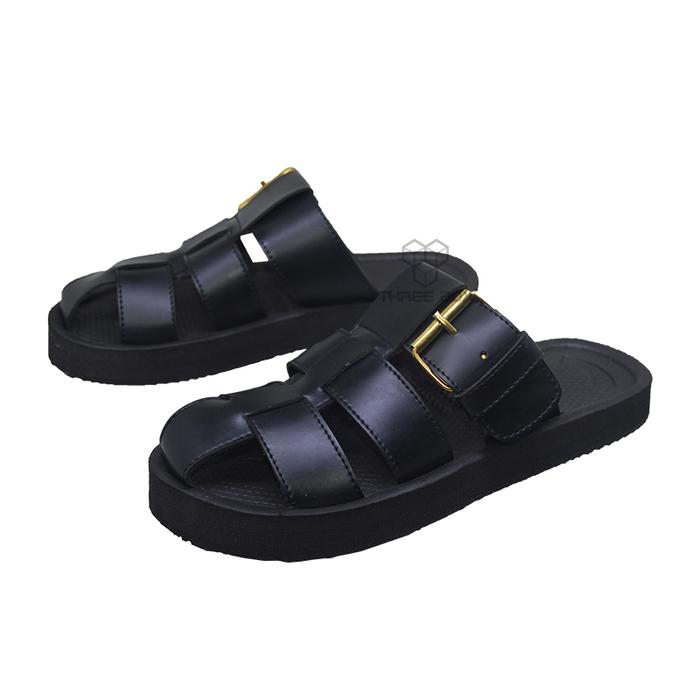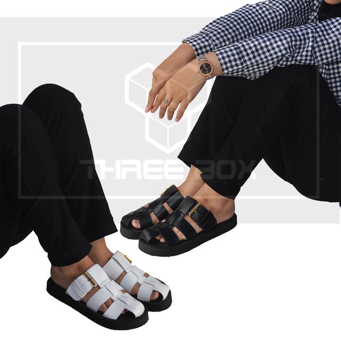 [Star]Sandal Selop Wanita Empuk - Sendal Slide Medium Jumbo - THREE BOX MOZA - Black, 37