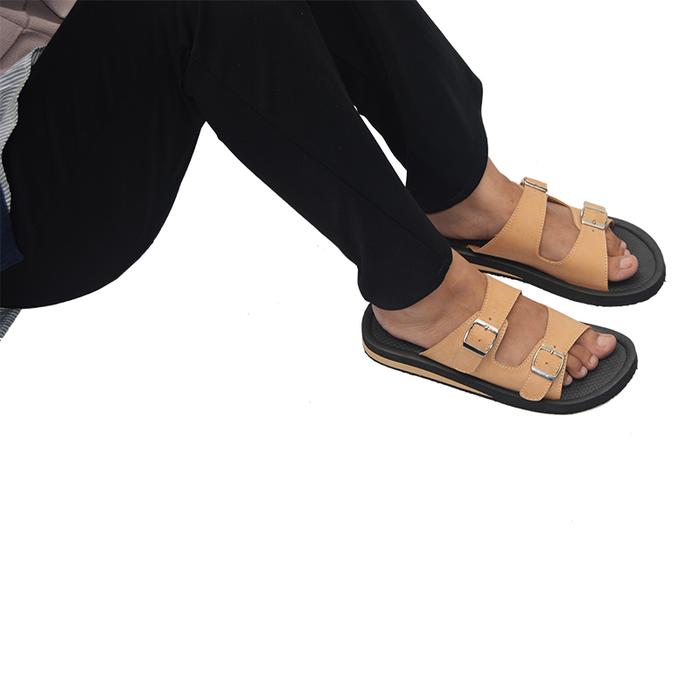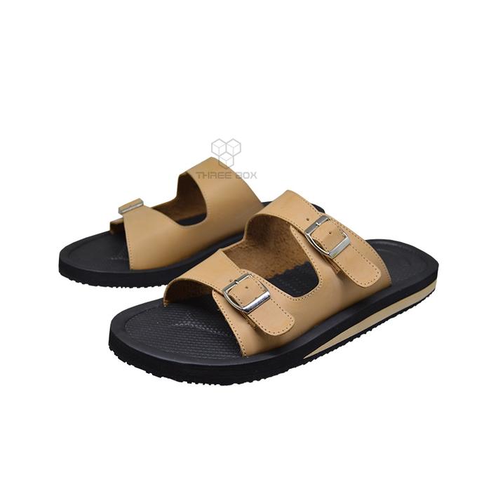 [Star]THREE BOX - Sandal Selop Pria Wanita Medium Jumbo - Octans Beige - Beige, 36