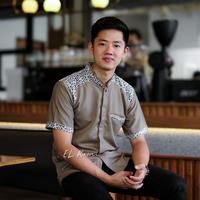 Kemeja Koko Lengan Pendek Elrumi Motif Araseo KombinasiI Putih Batik Muslim Pria Dewasa Atasan - Baju Kurta - putih M