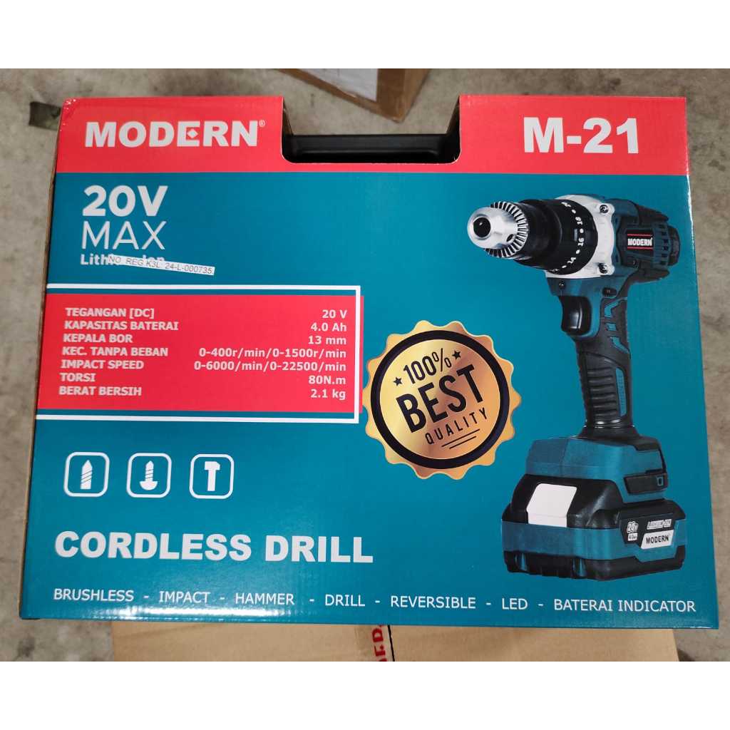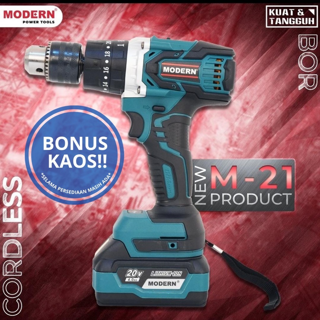 Bor Baterai 13Mm Modern M21 Cordless Bor Beton Impact Drill 20V 4Ah