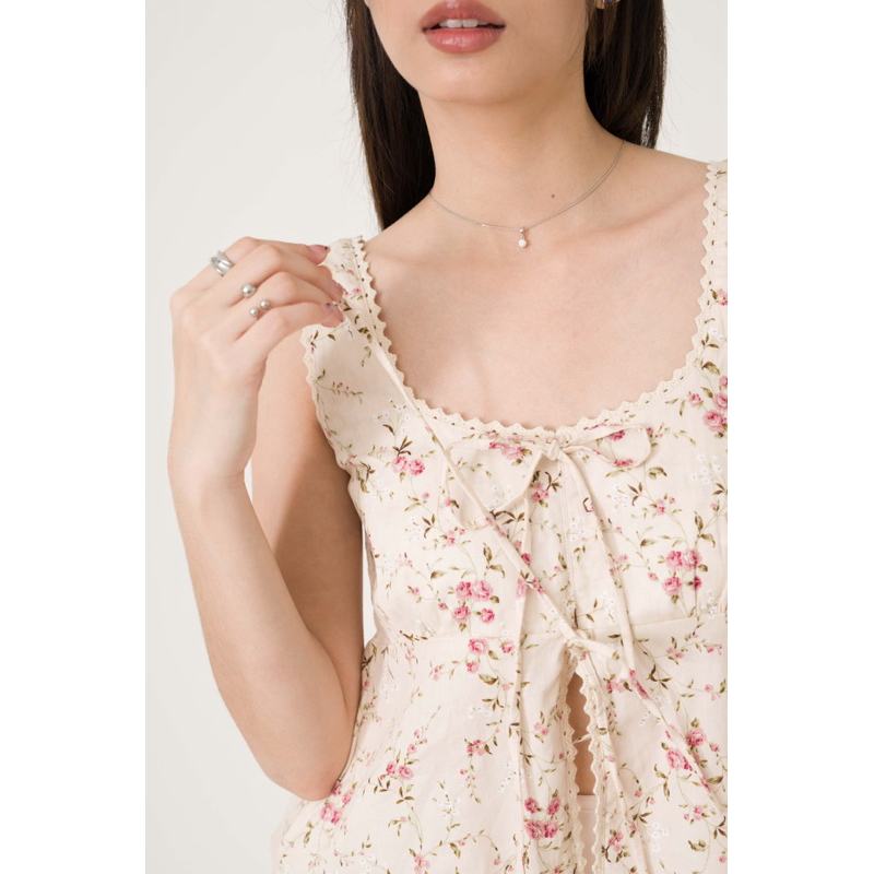 With Ease - Rose Top | Summer Floral Bow Top | Atasan Wanita Bunga Bow Top Korea Style Katun Elegan Casual