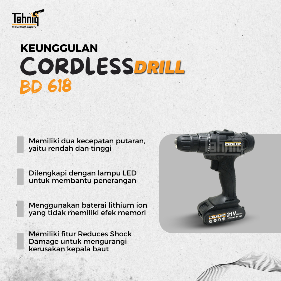 Doliz Bd618 Mesin Bor Cordless Drill 21V