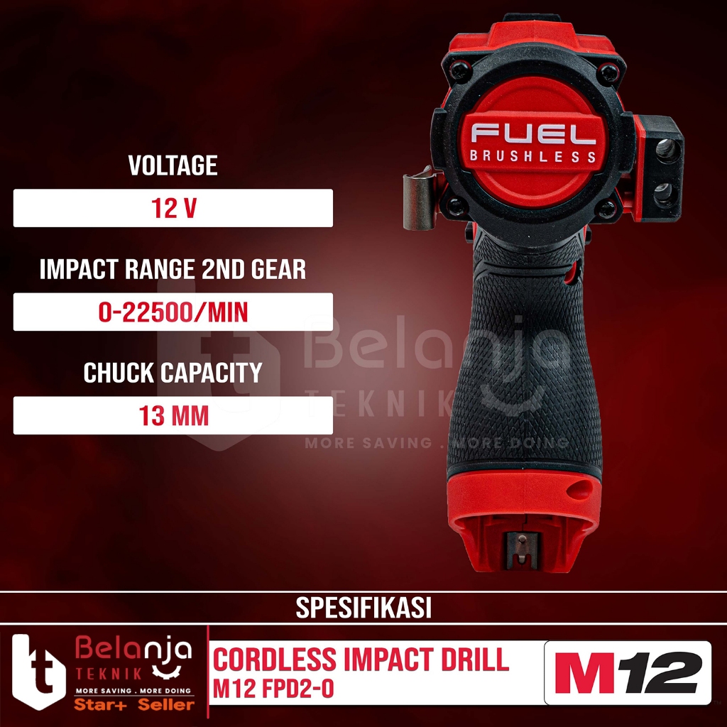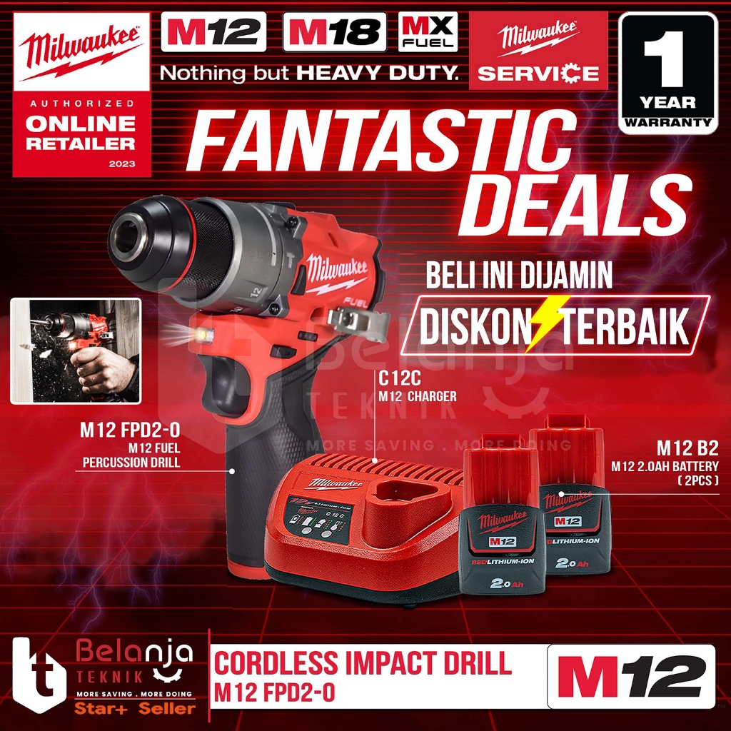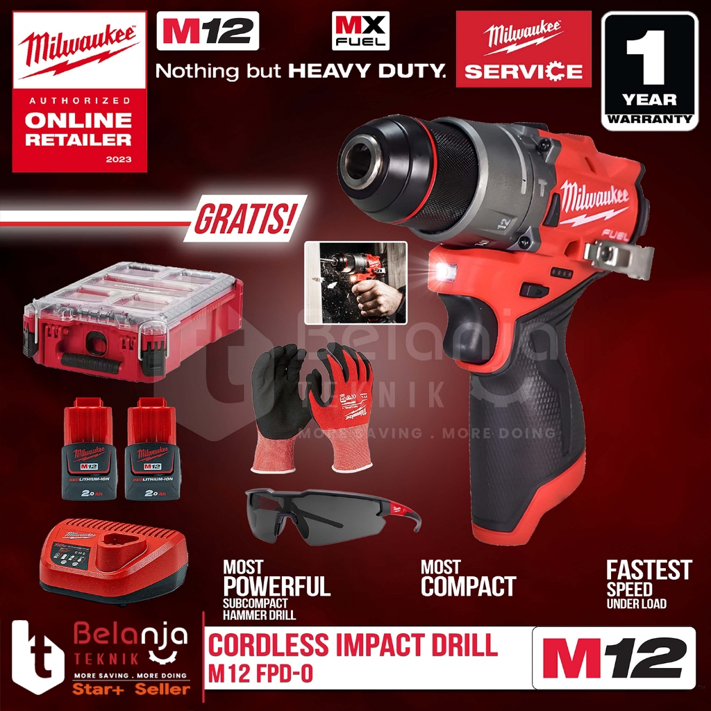 Mesin Bor Baterai Milwaukee Fpd2-202 Cordless Impact Drill Set 12V 2 Ah 2 Battery Fpd Fpd2